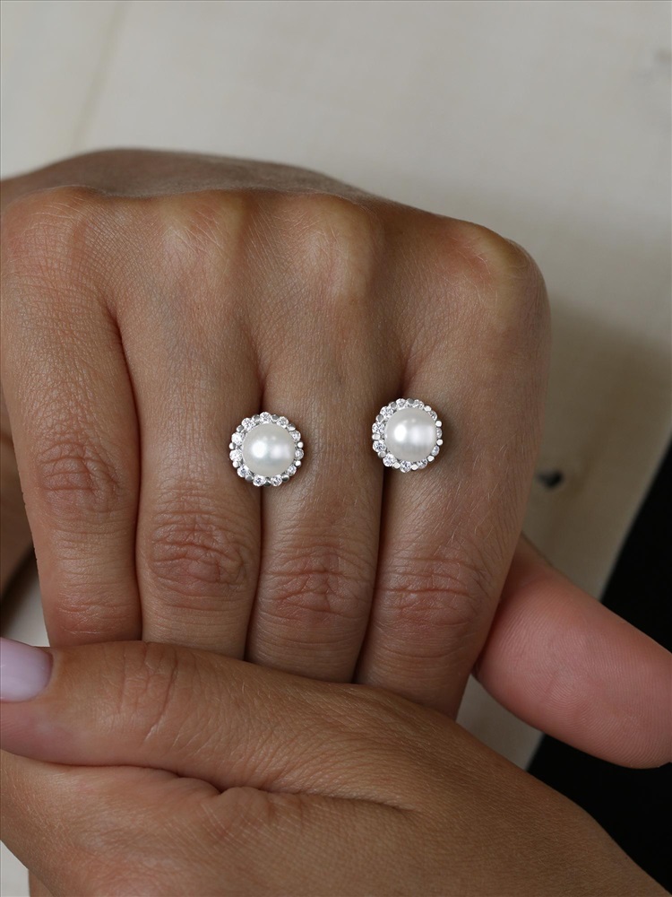 Серьги из серебра с фианитами родированные - Булавки 925 пробы С-4816-Р