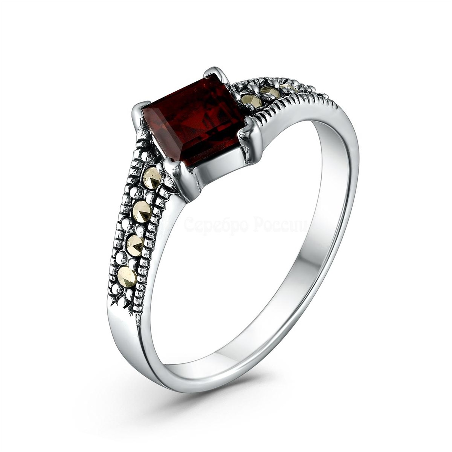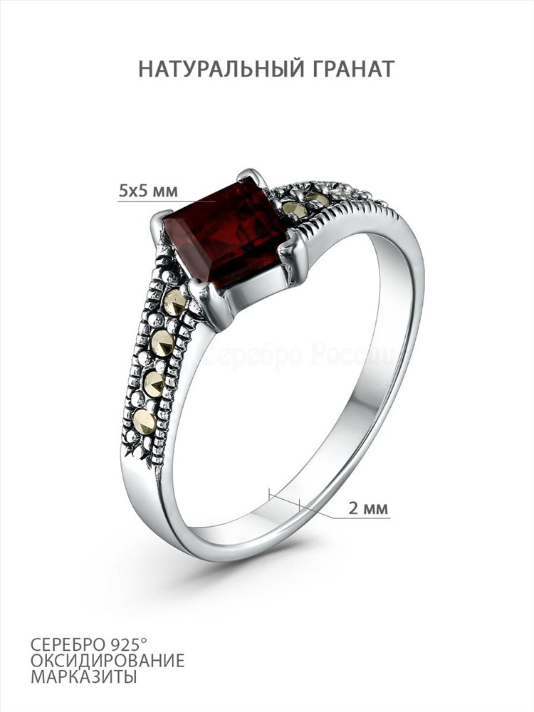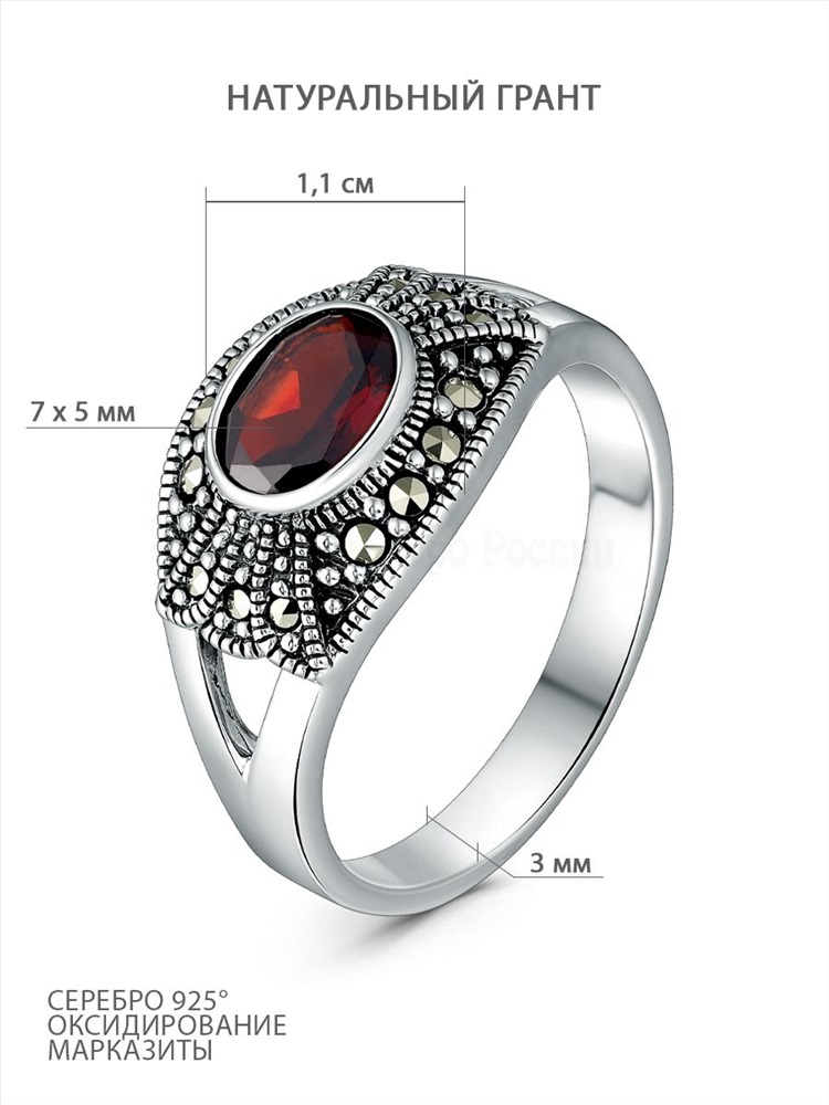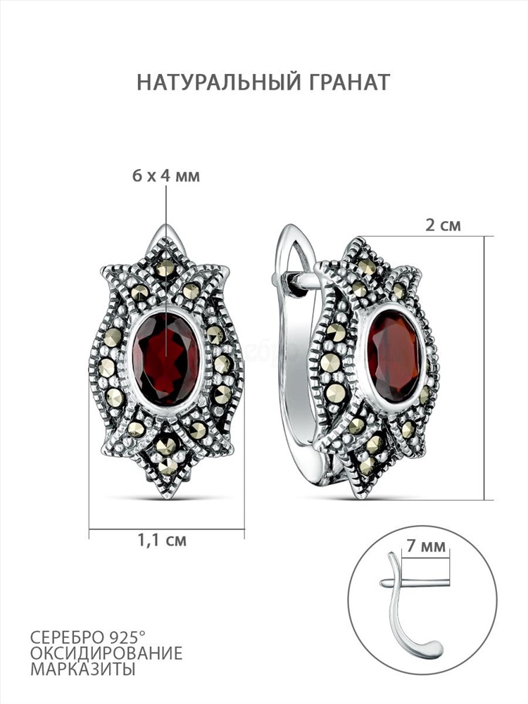 Серьги из чернёного серебра с натуральным гранатом и марказитами 925 пробы HE0303-AFG-LK 4 фото