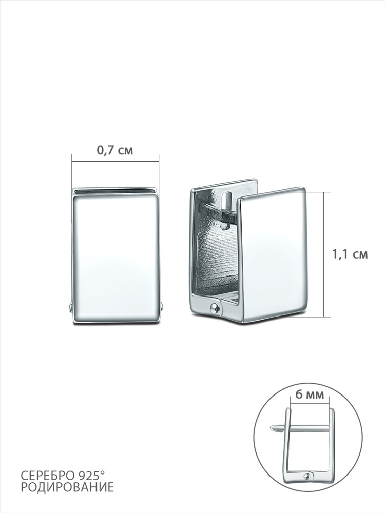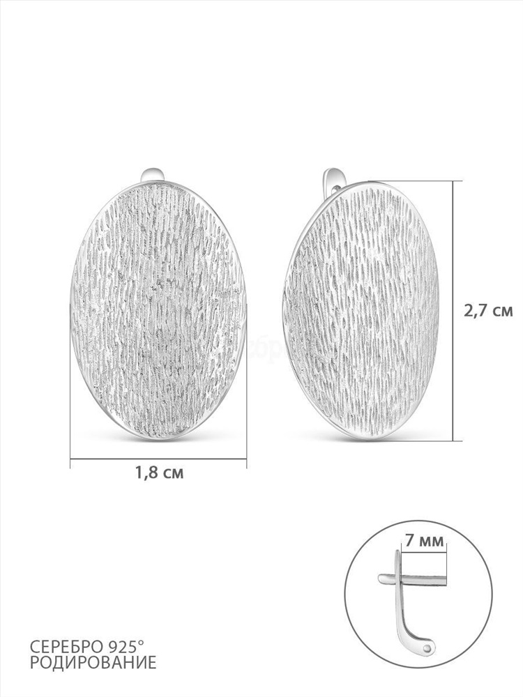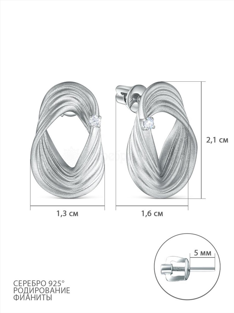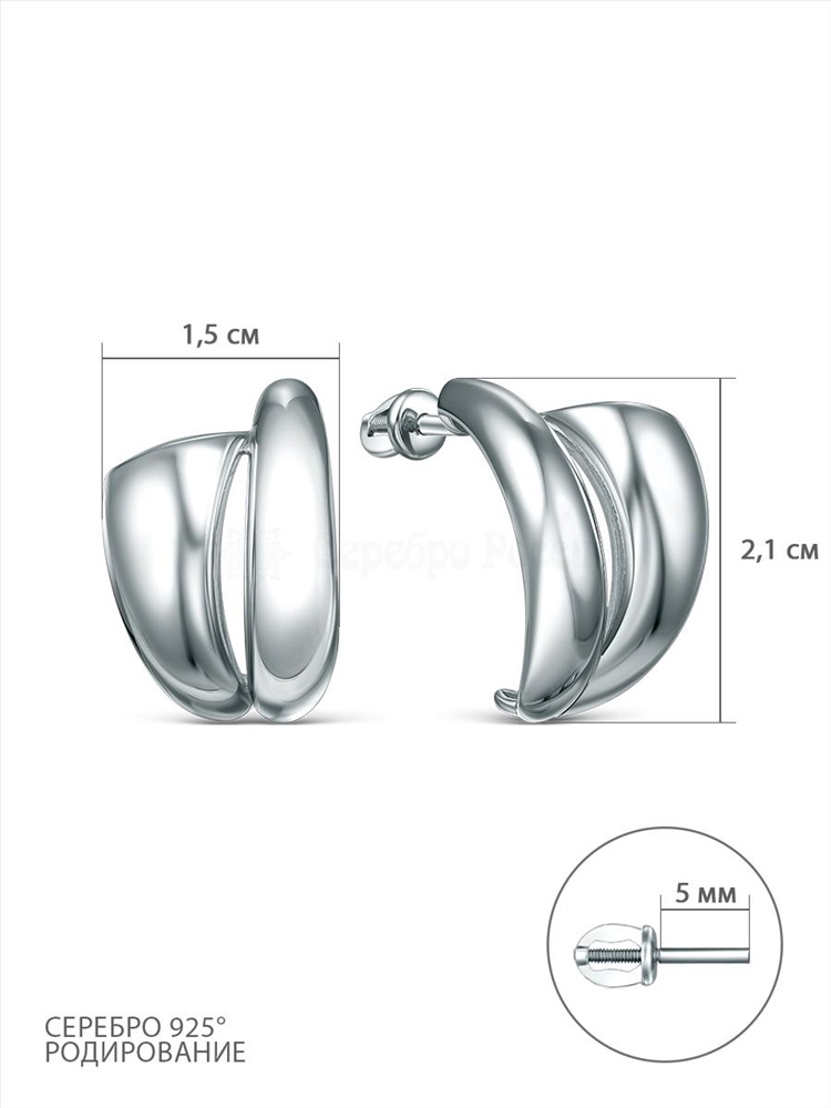 Серьги-пусеты из серебра родированные 925 пробы 25021р 2 фото