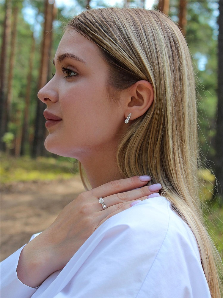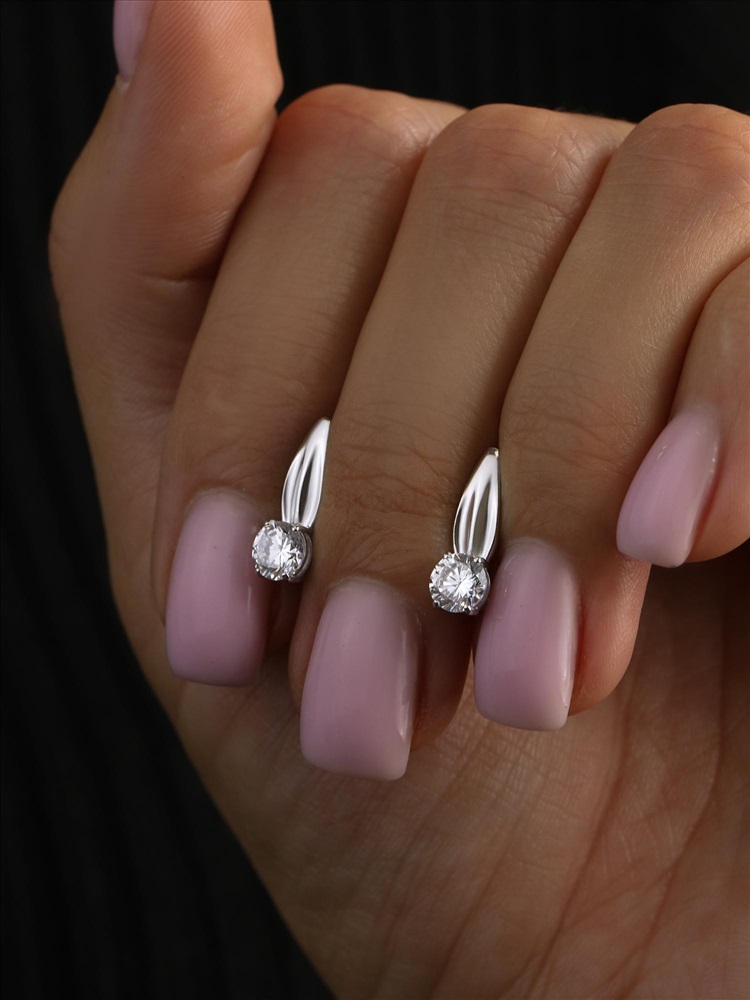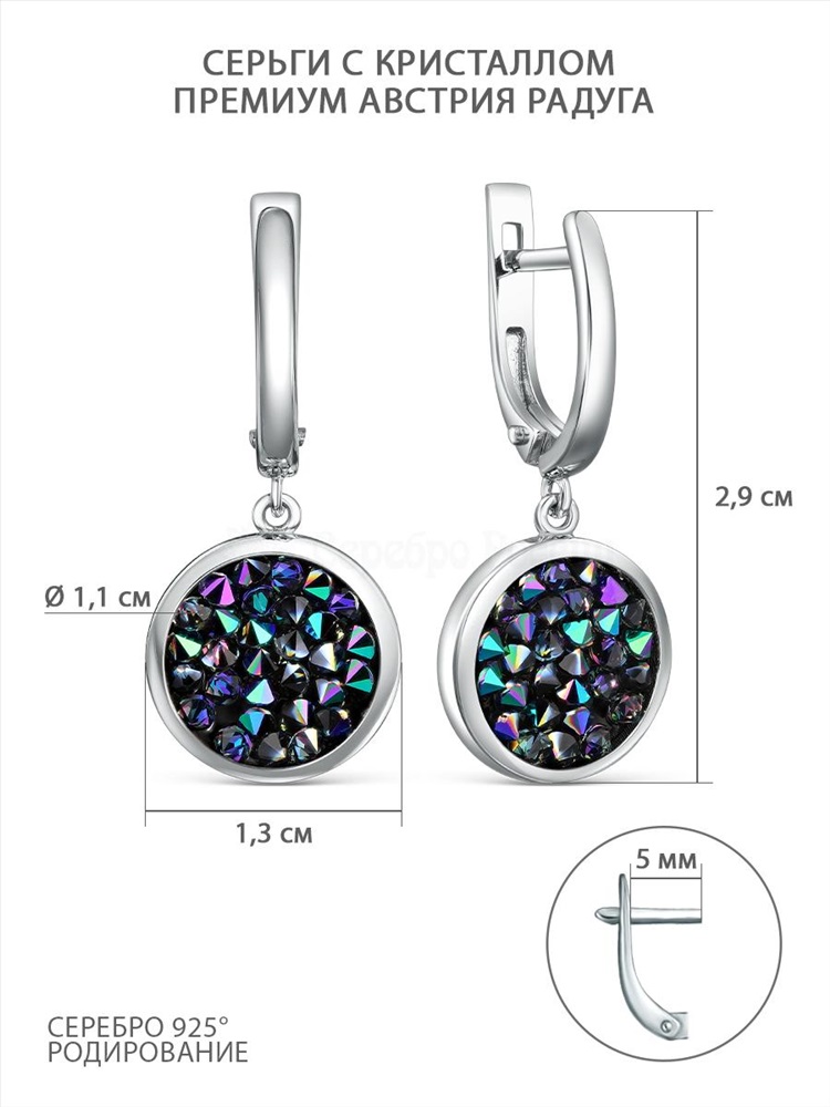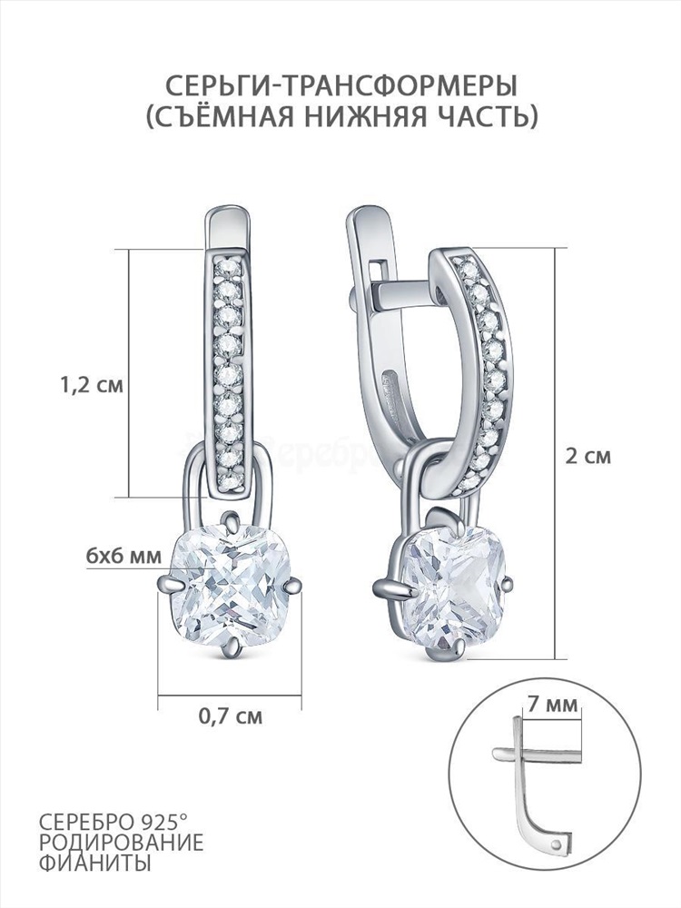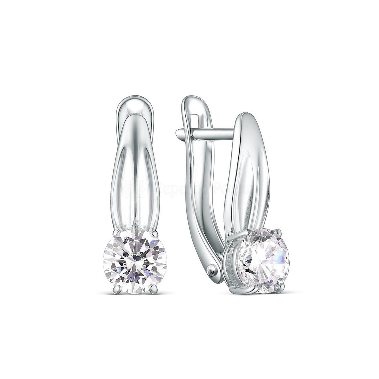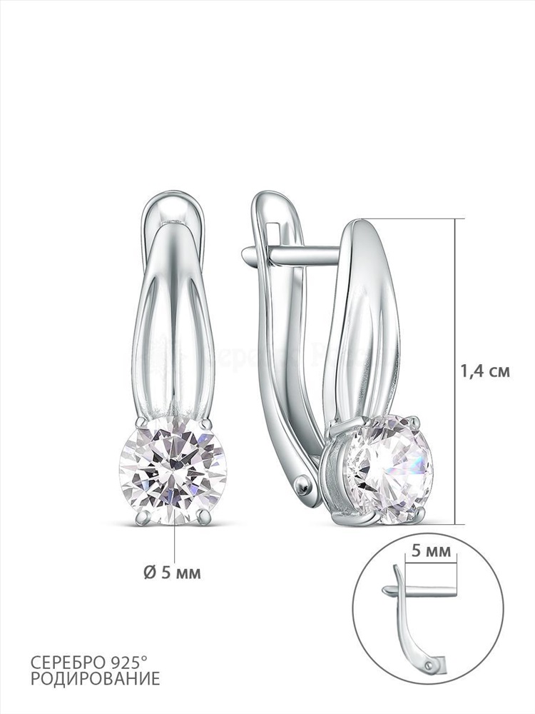 Серьги из серебра с фианитами родированные 301967-FA11 2 фото
