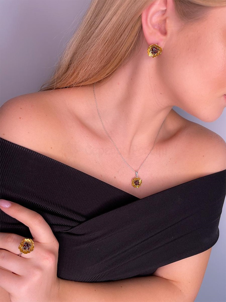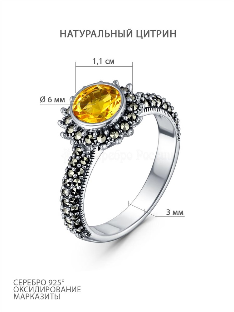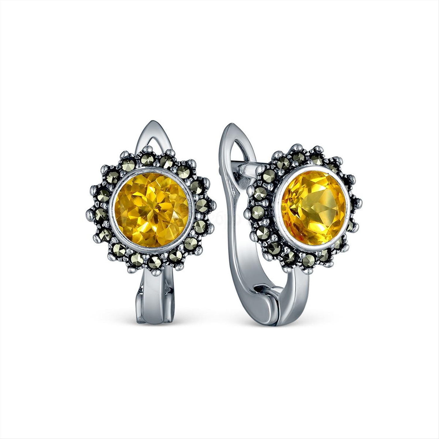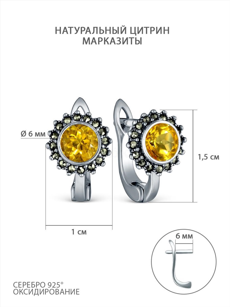 Серьги из чернёного серебра с натуральным цитрином и марказитами 925 пробы HE1754-CT-LK 4 фото