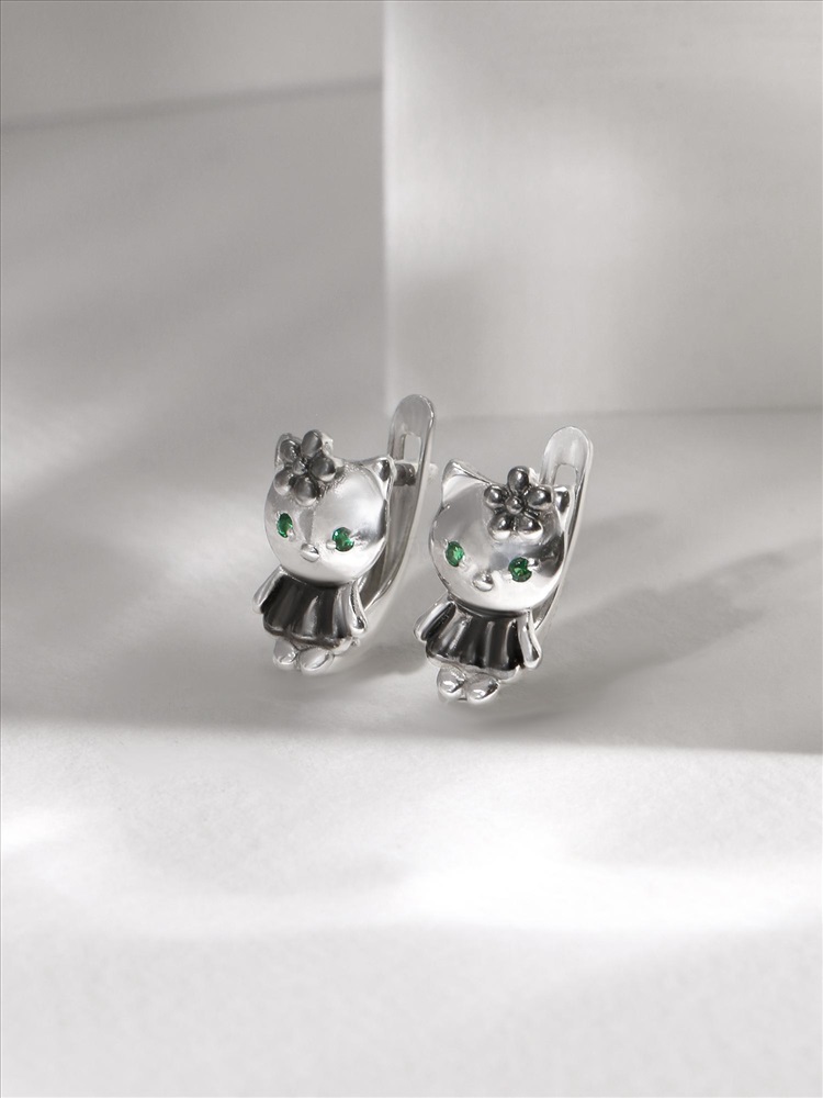 Серьги детские из серебра с фианитами родированные - Лапки 925 пробы S2180691010р221 2 фото