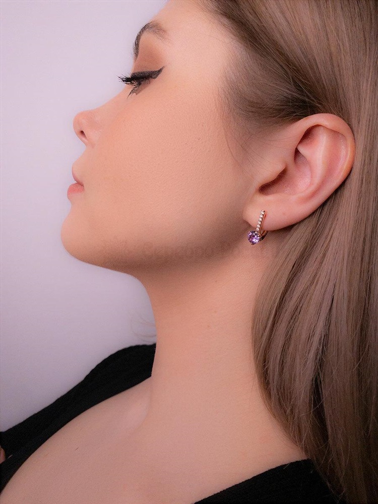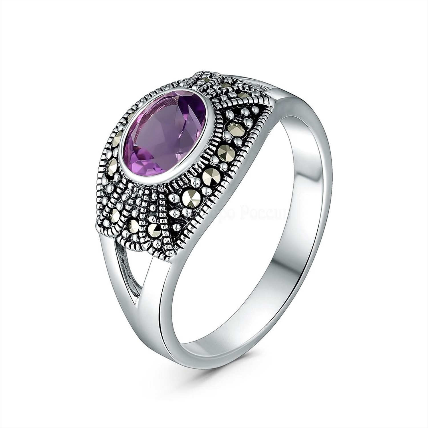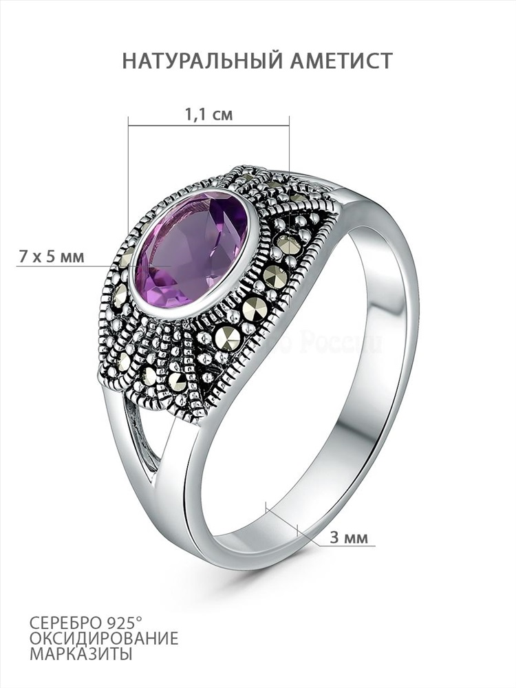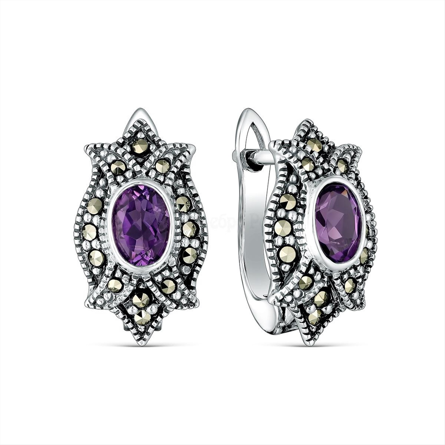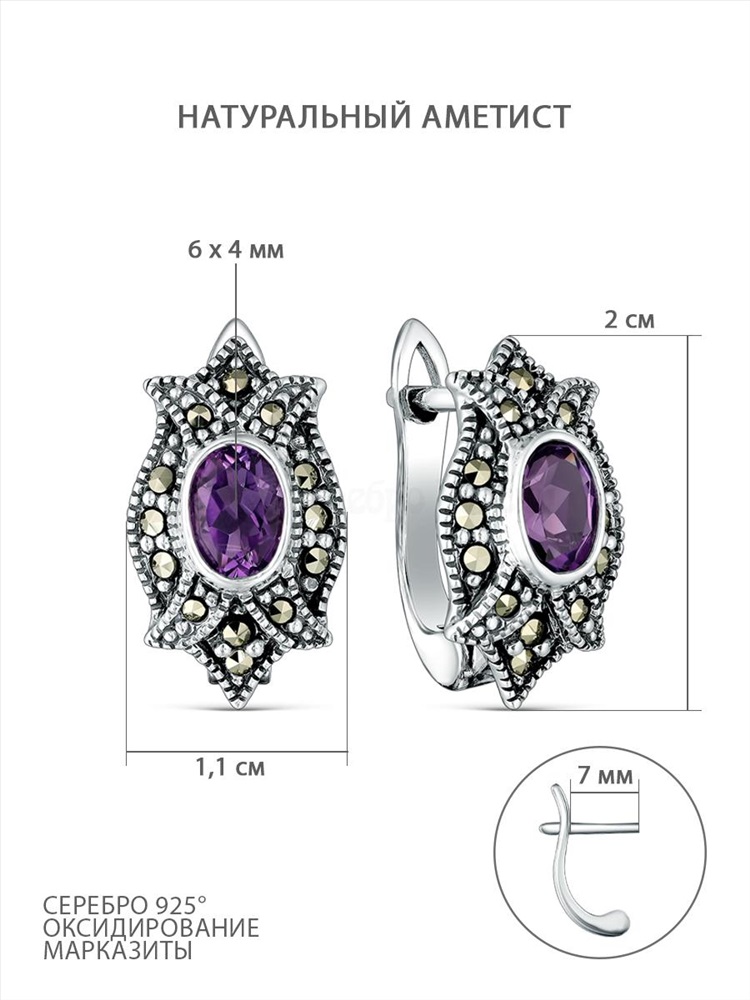 Серьги из чернёного серебра с натуральным аметистом и марказитами 925 пробы HE0303-AM-LK 4 фото