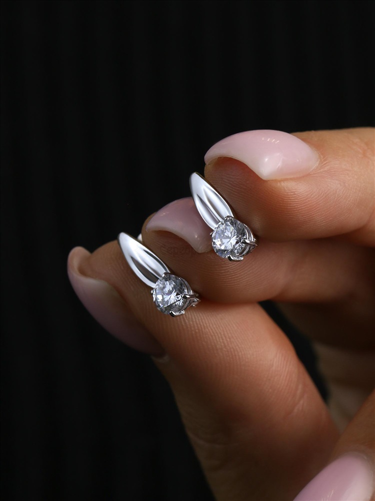 Серьги детские из серебра с эмалью и фианитами родированные - Зайки 925 пробы 2313056 2 фото