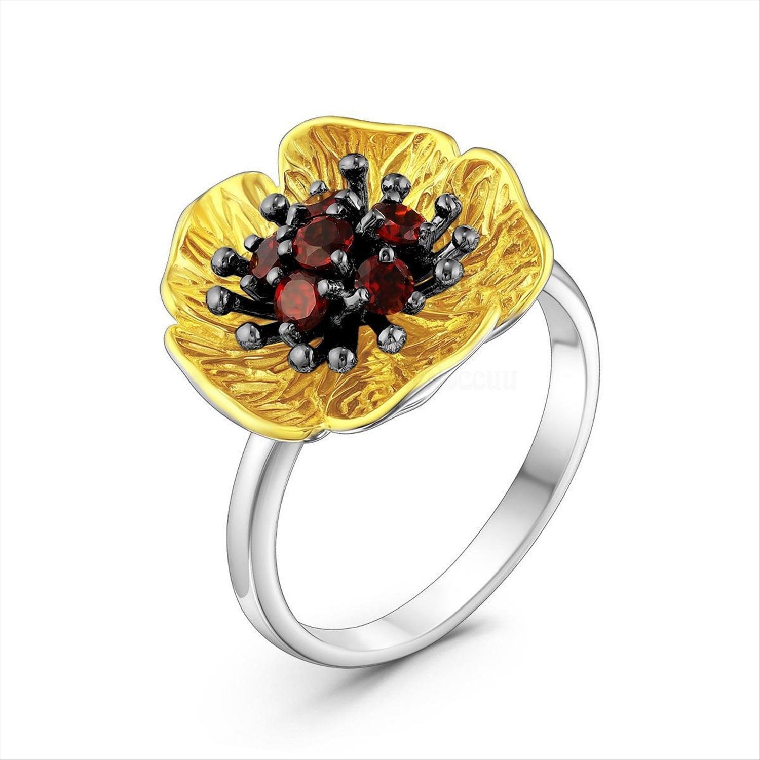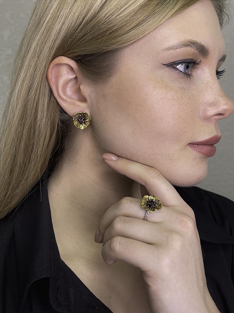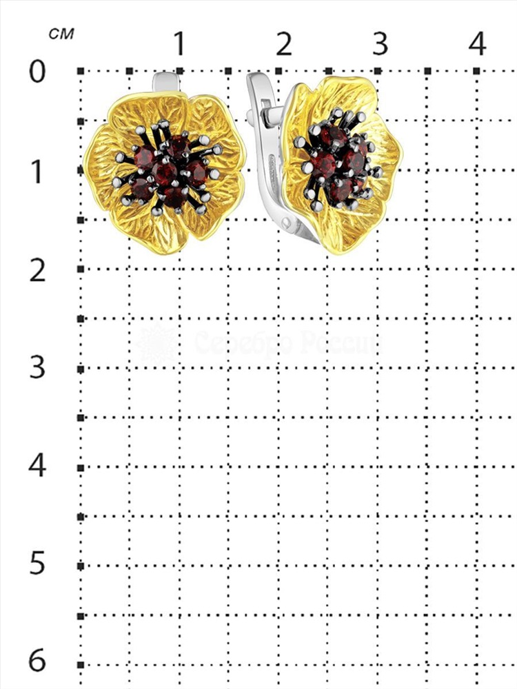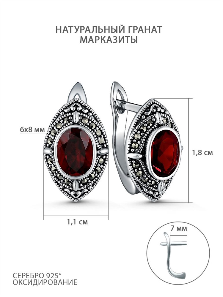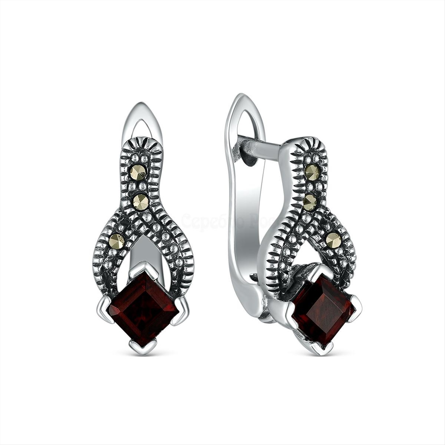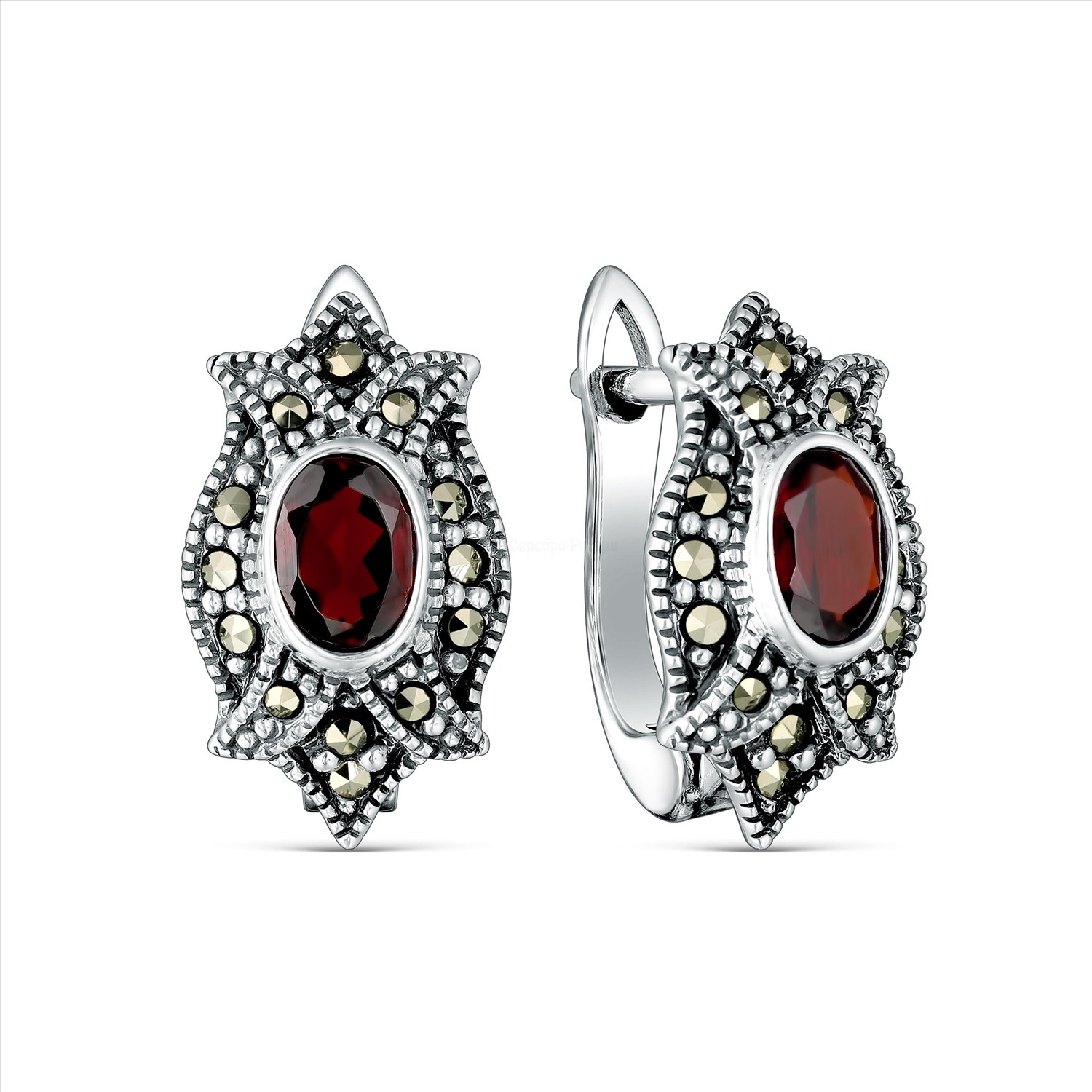 Серьги из чернёного серебра с натуральным гранатом и марказитами 925 пробы HE1751-AFG-LK 2 фото