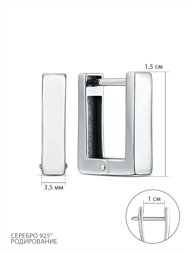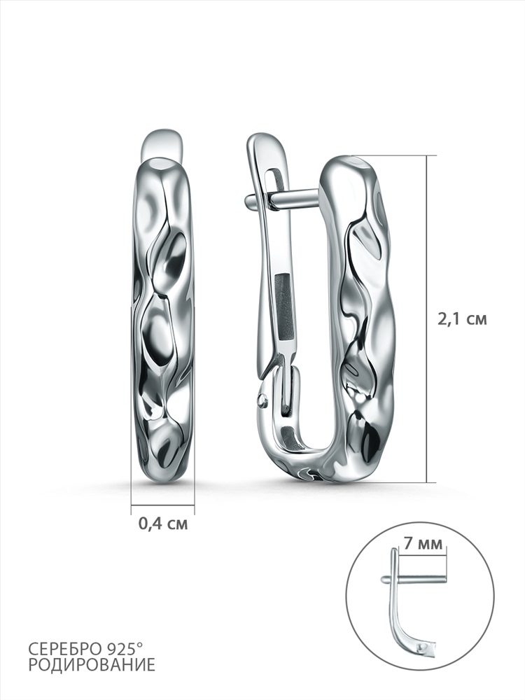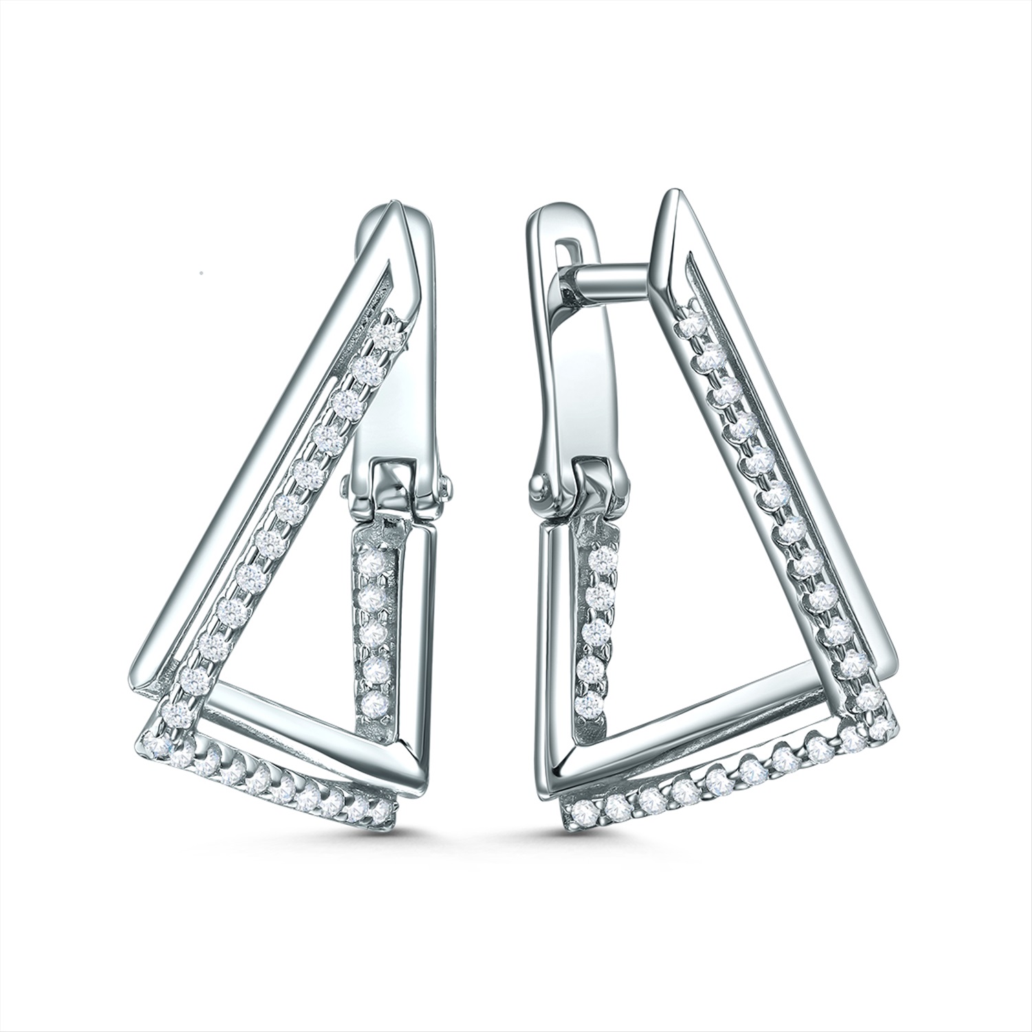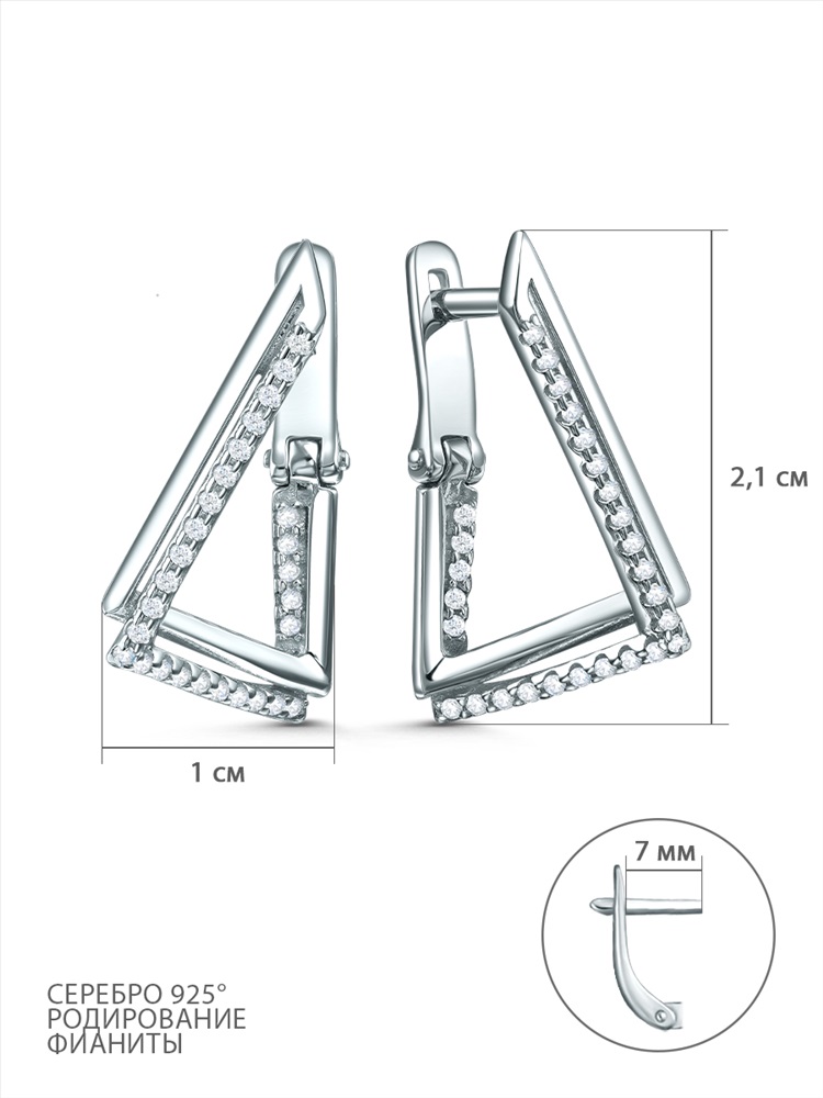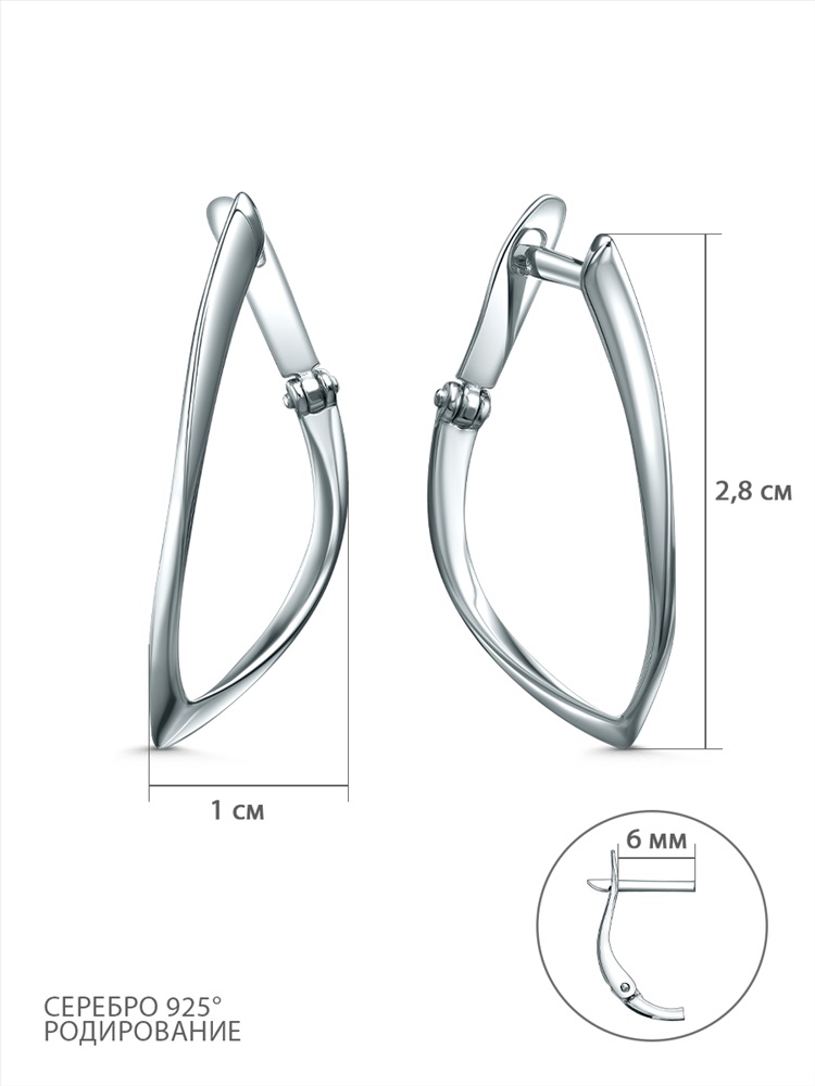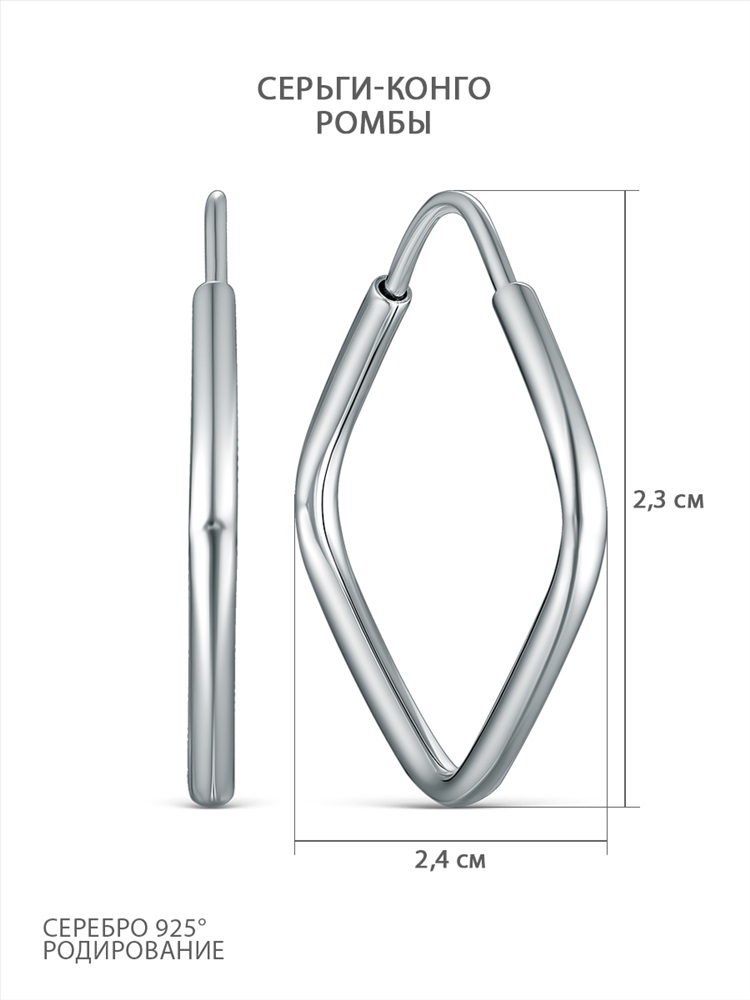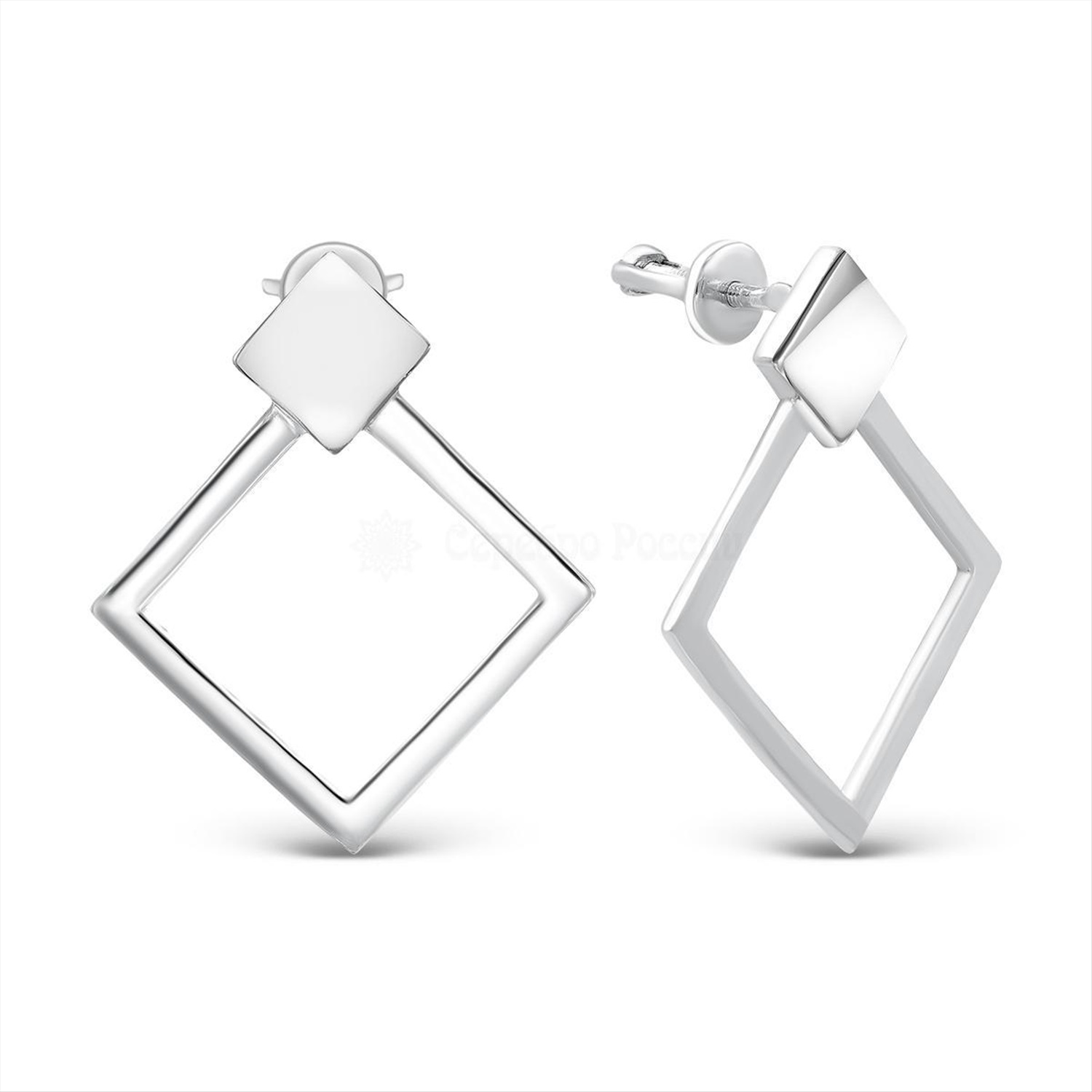 Серьги-конго из серебра родированные - Ромбы 02-12-4420 2 фото