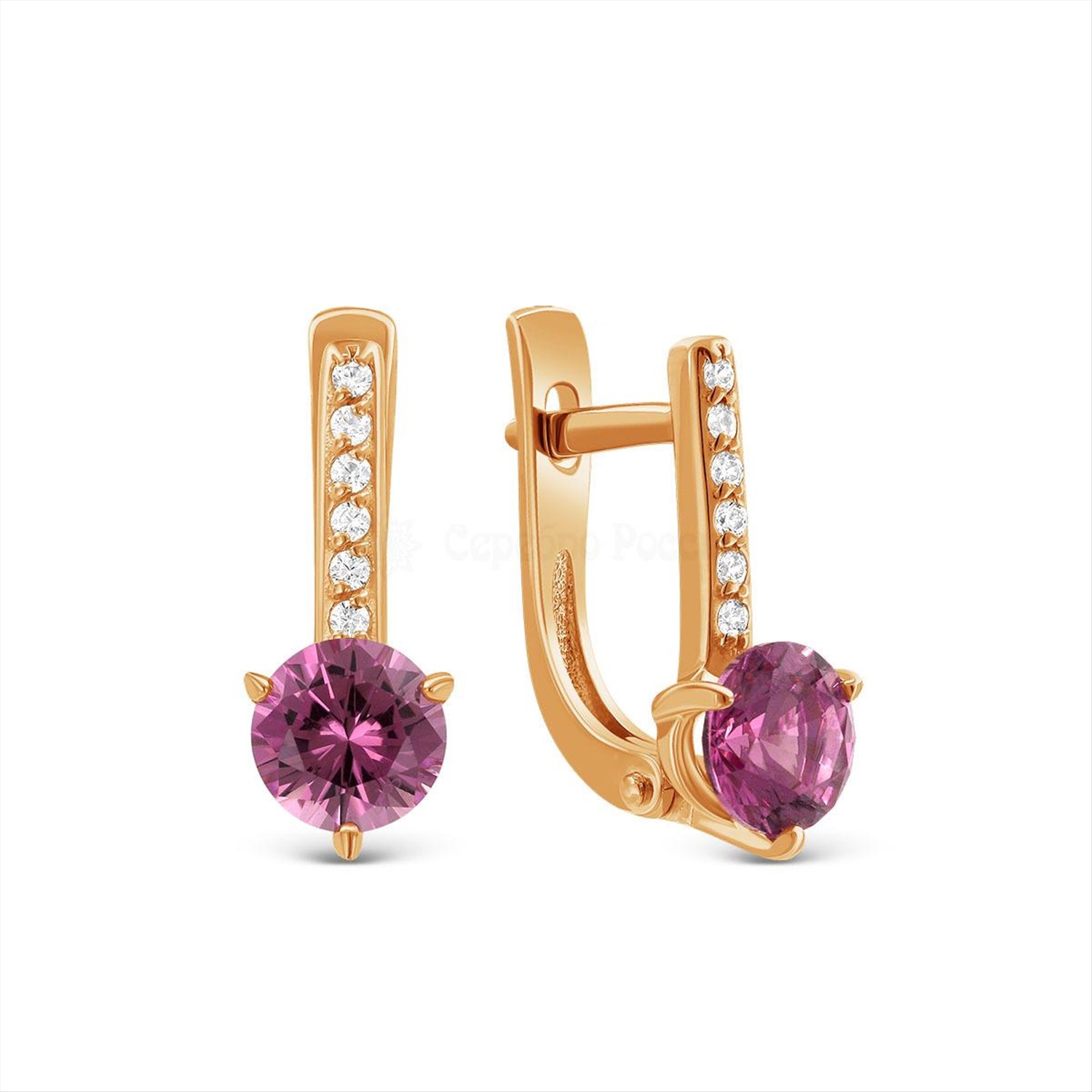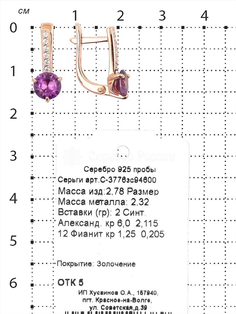 Серьги из золочёного серебра с синт.александритом и фианитами 925 пробы С-3776зс94600 4 фото
