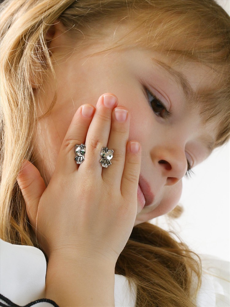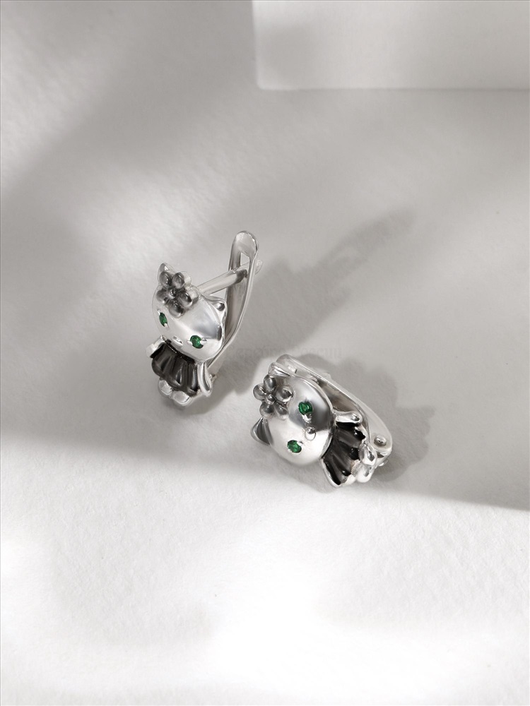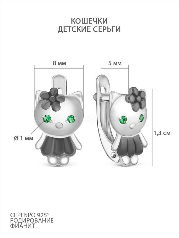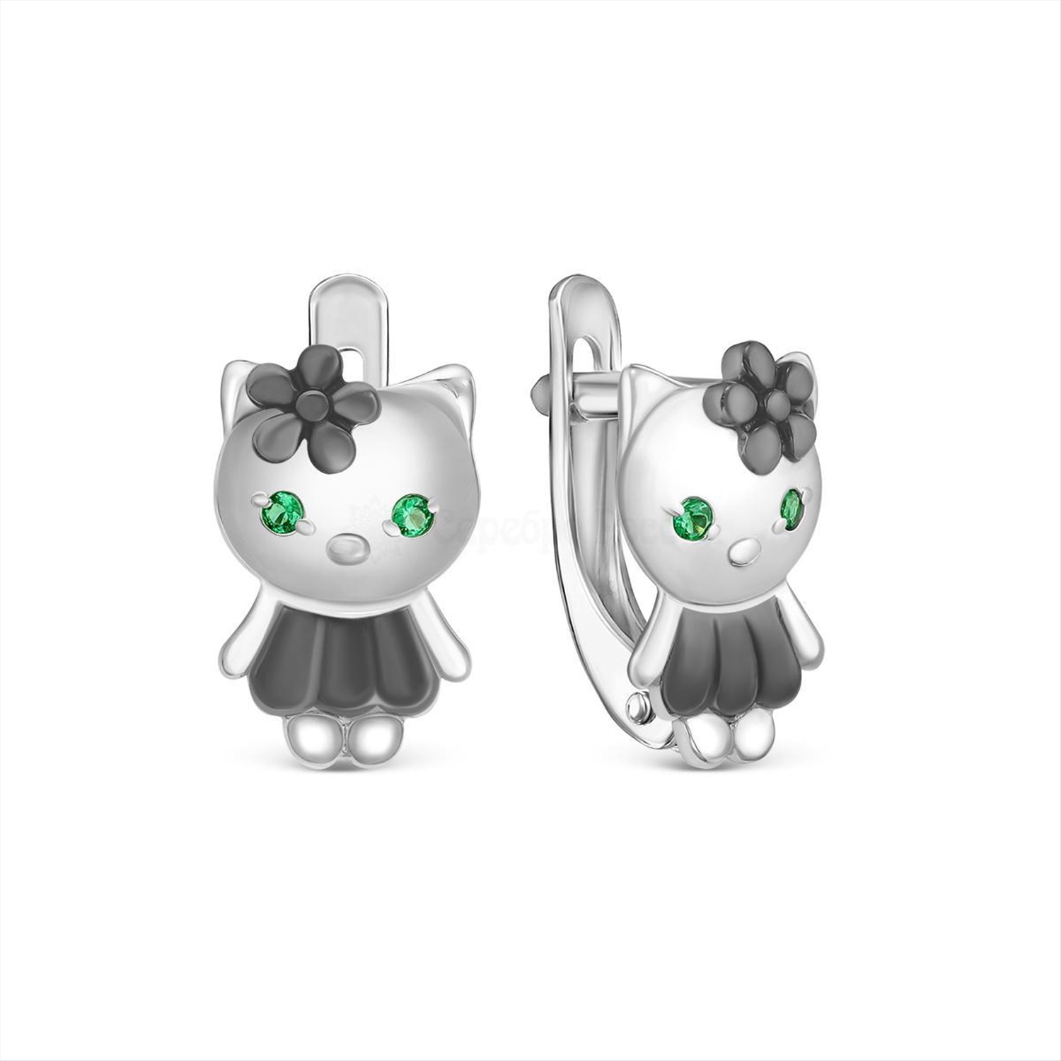 Серьги детские из серебра с эмалью родированные - Совята 925 пробы 5067эр2 2 фото