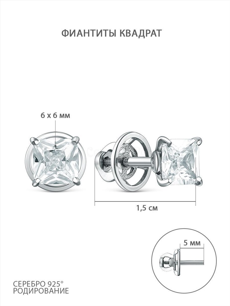 Серьги-пусеты из серебра с фианитами родированные 925 пробы S2180271010р 5 фото