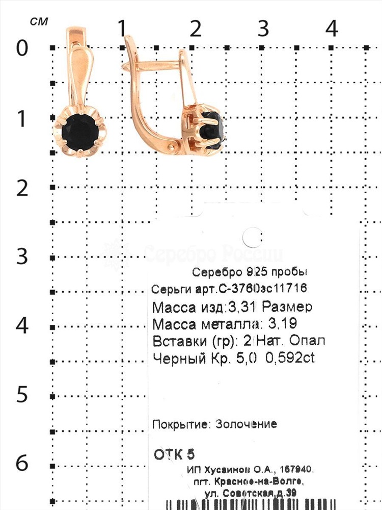 Серьги из золочёного серебра с нат.опалом 925 пробы С-3760зс11716 10 фото