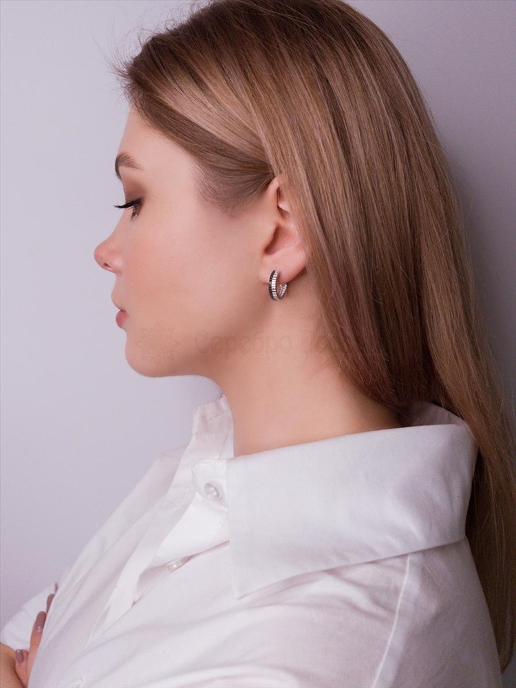 Серьги из серебра с фианитами родированные 925 пробы S2180771010р 10 фото