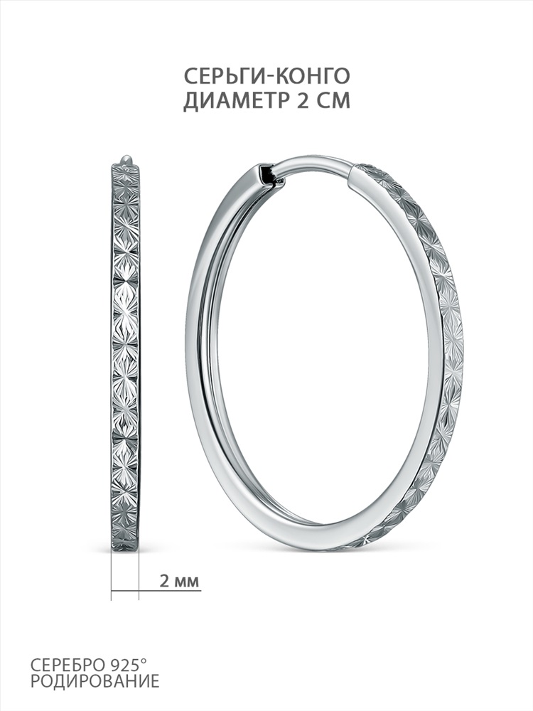 Серьги-конго из серебра родированные - диаметр 2 см 02-12-8720 2 фото