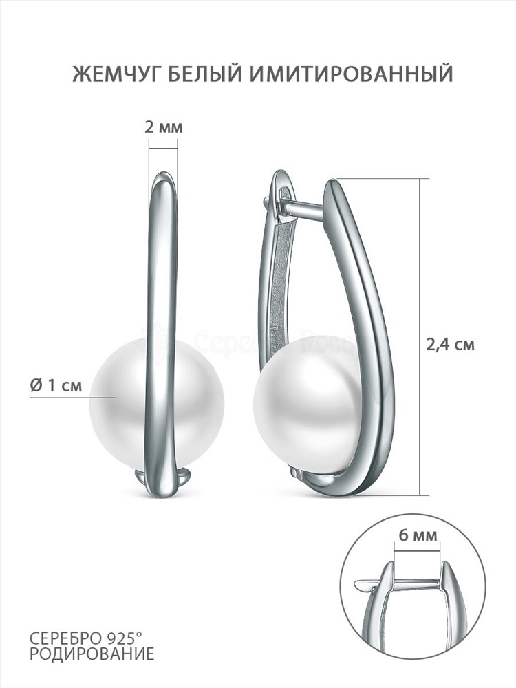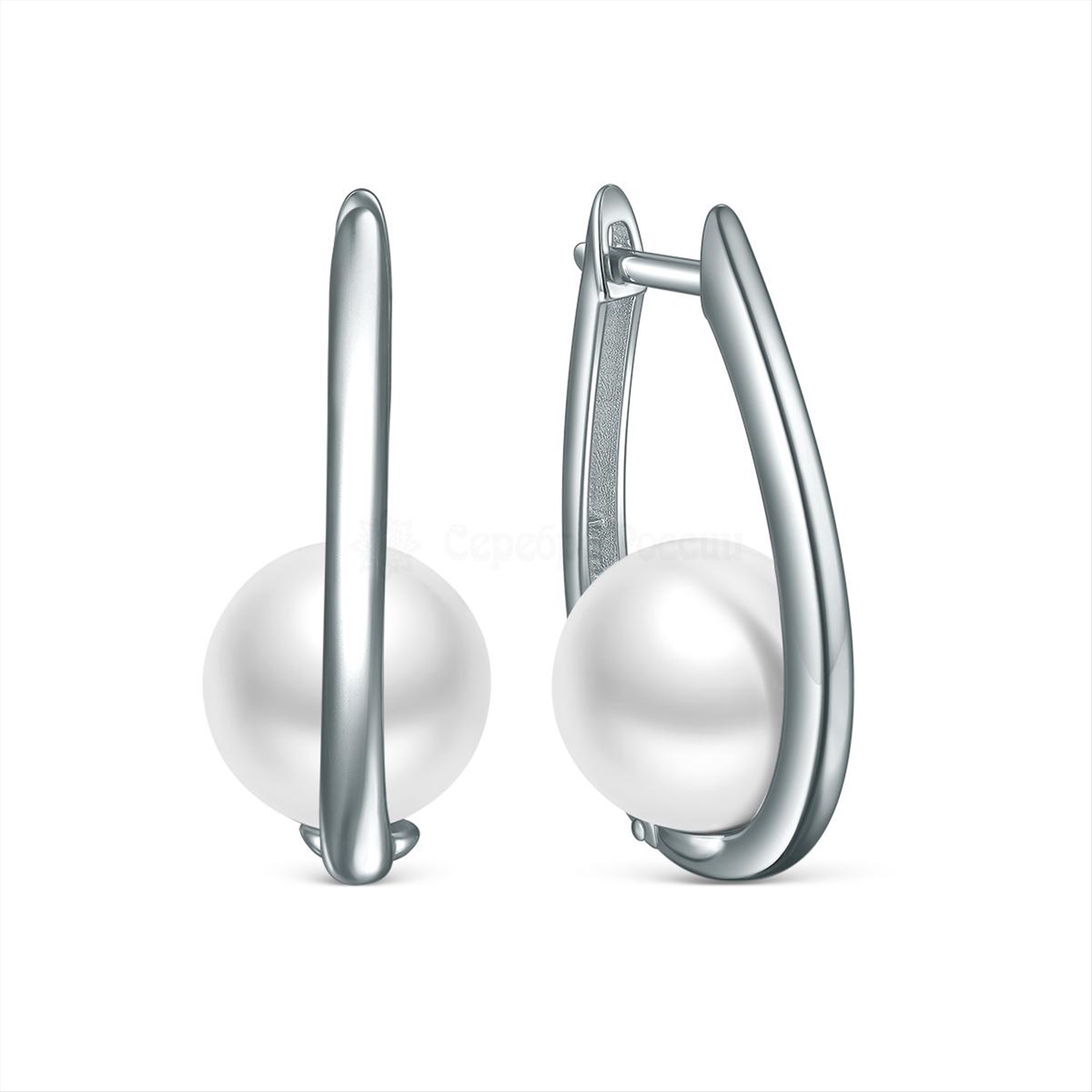 Серьги из серебра с белым имитированным жемчугом родированные 2-145р1001 2 фото