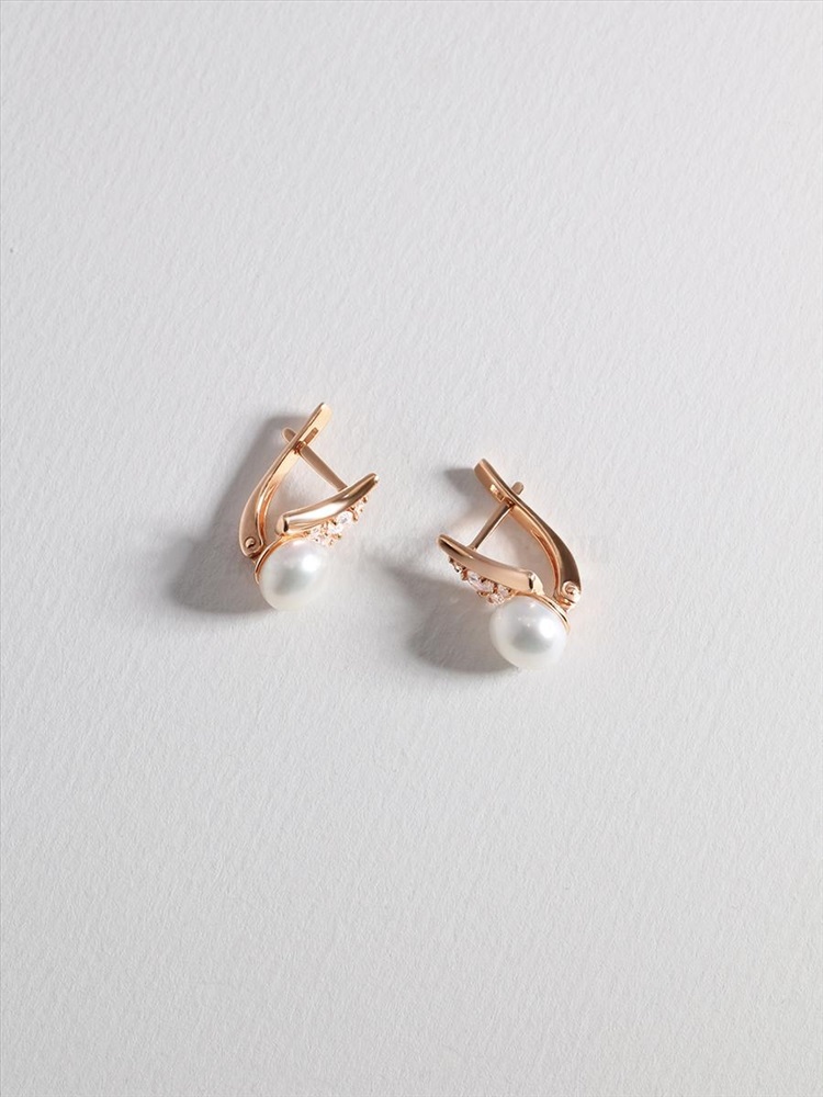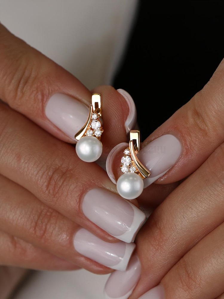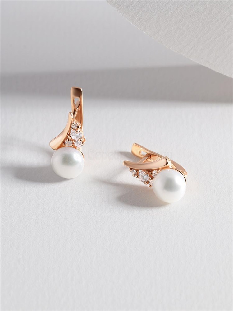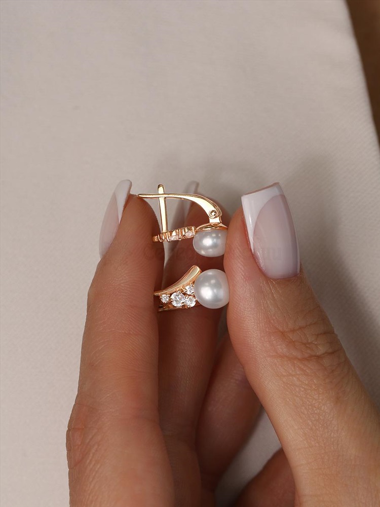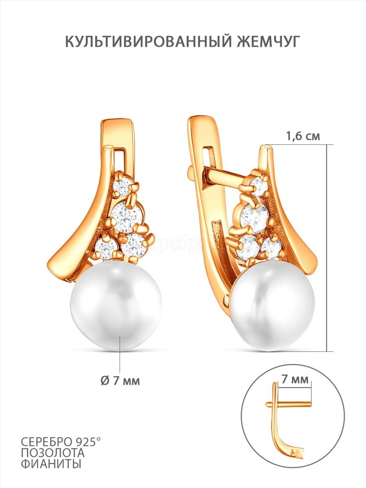 Серьги из золочёного серебра с культивированным жемчугом и фианитами 925 пробы 2-299з1005 8 фото