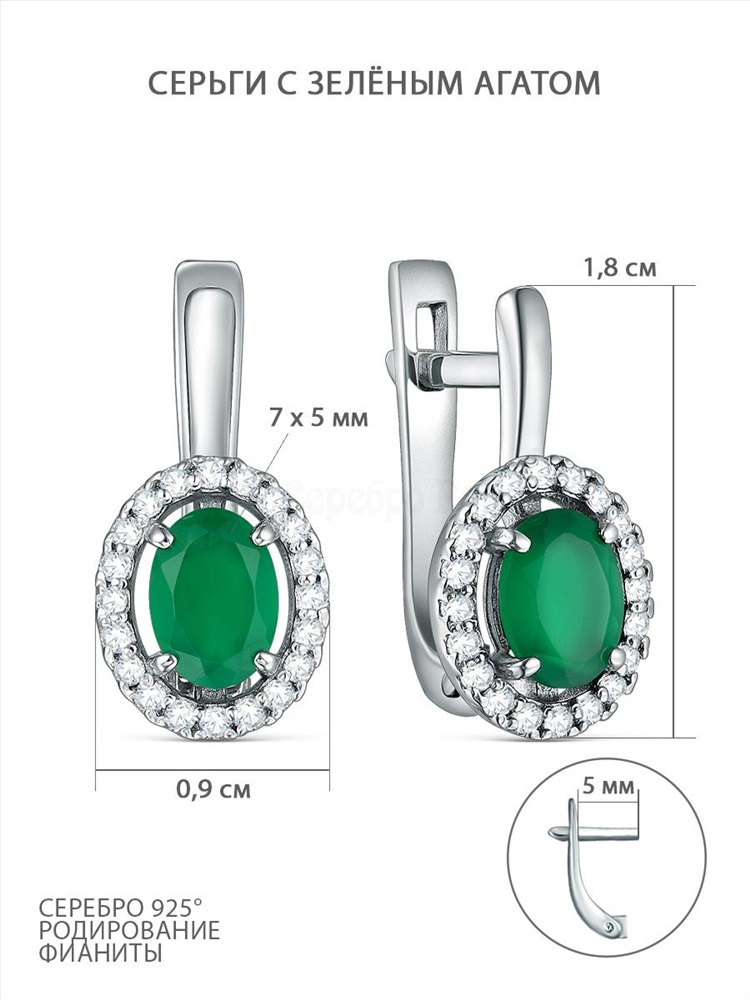 Серьги из серебра с плавленым кварцем цвета лунный мятный родированные 925 пробы 00169243РС 4 фото