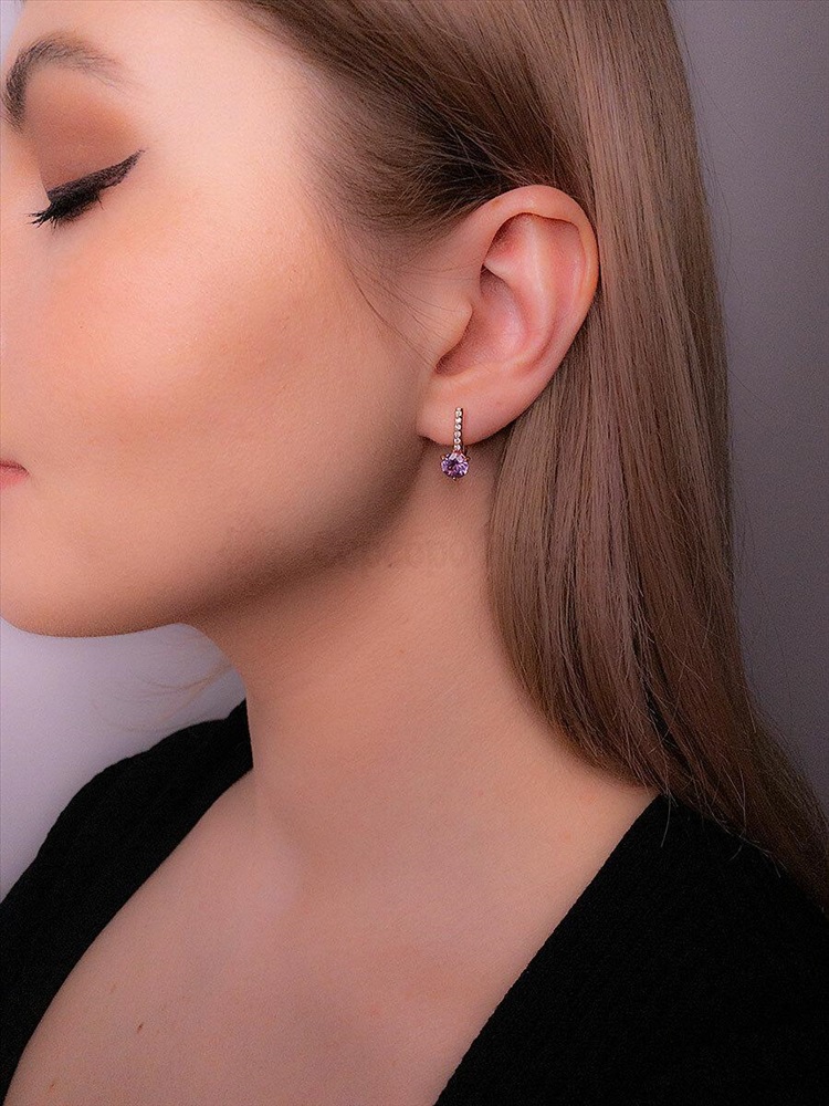 Серьги из серебра с имит.кораллом, пл.кварцем цв.аметист и фианитами родированные 925 пробы СС-00550-3 2 фото