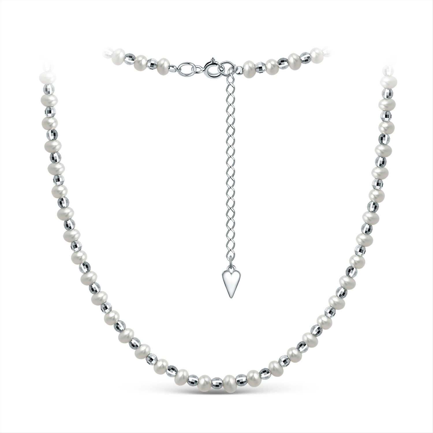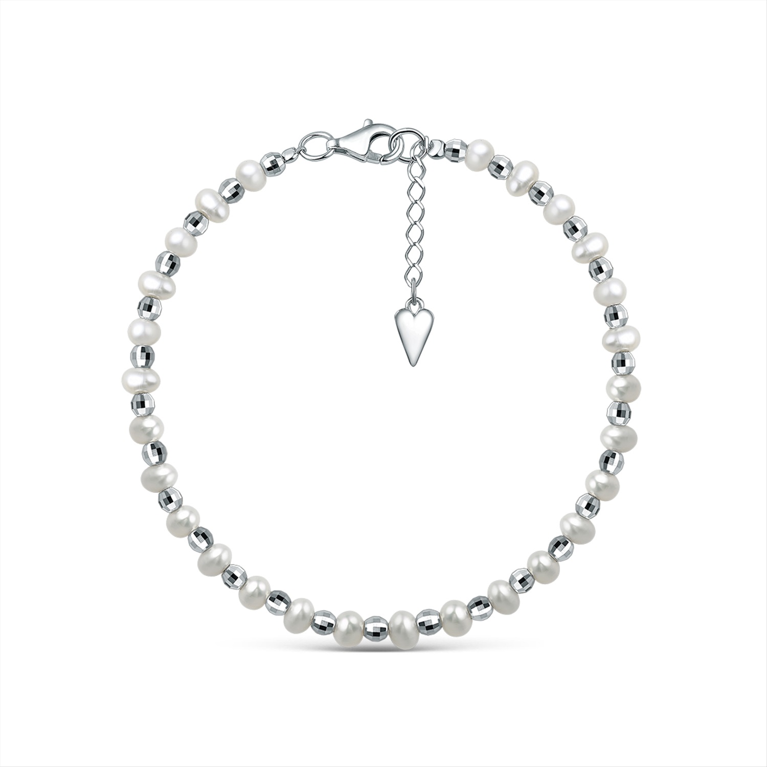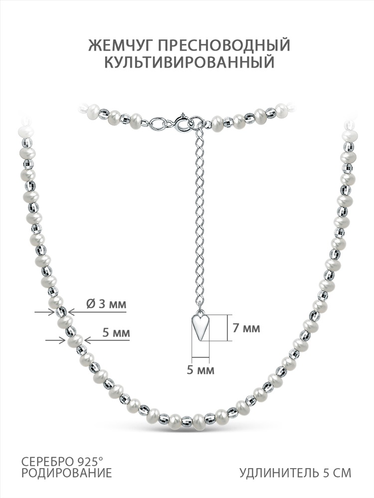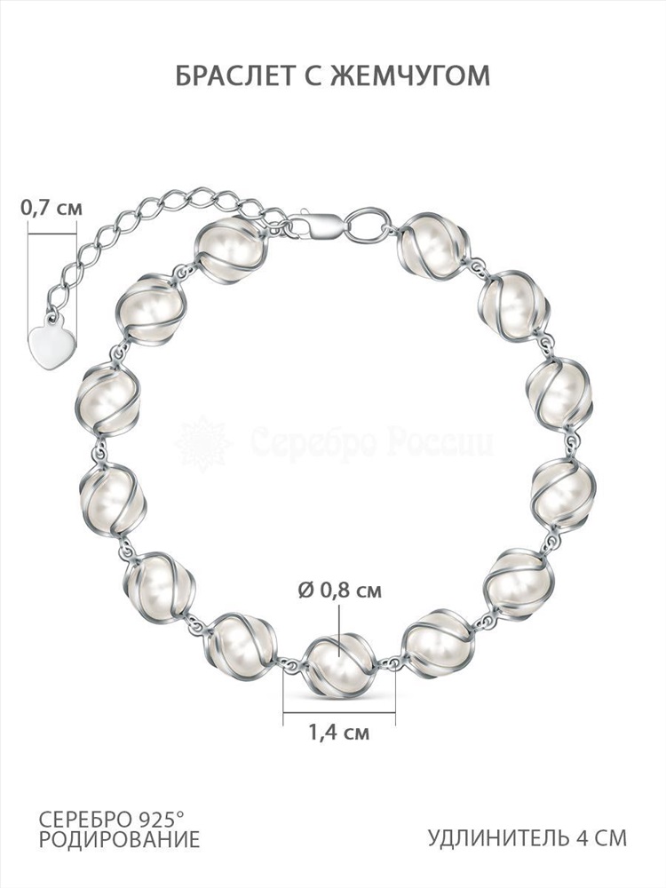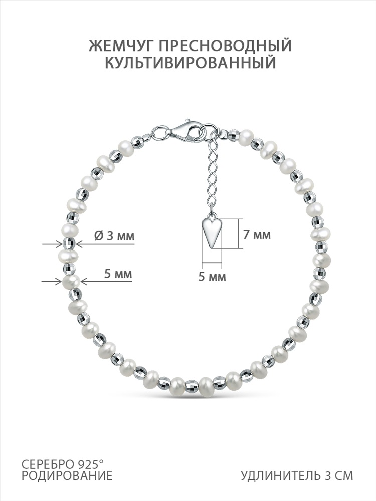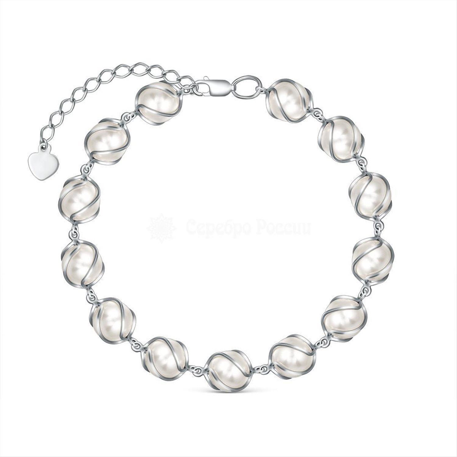 Браслет из серебра с пресноводным культивированным жемчугом родированный - Сердце, 19 см 251-10-293-19р 2 фото