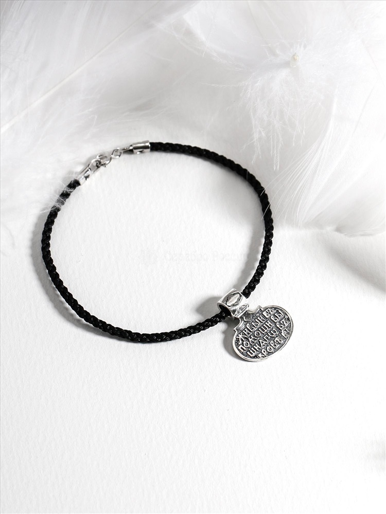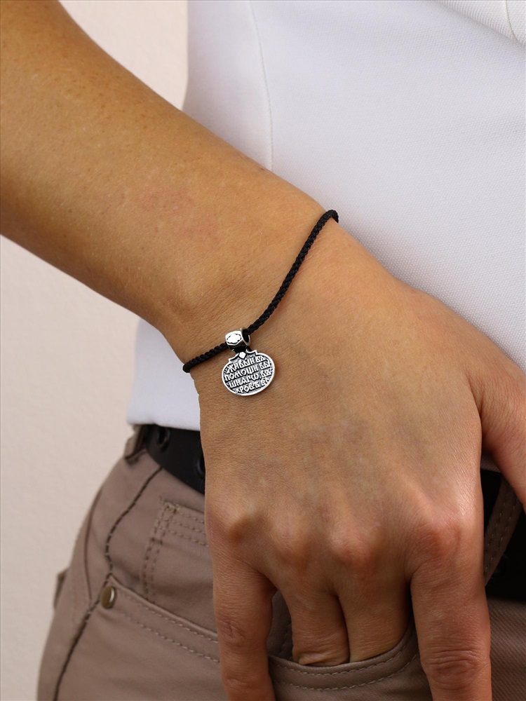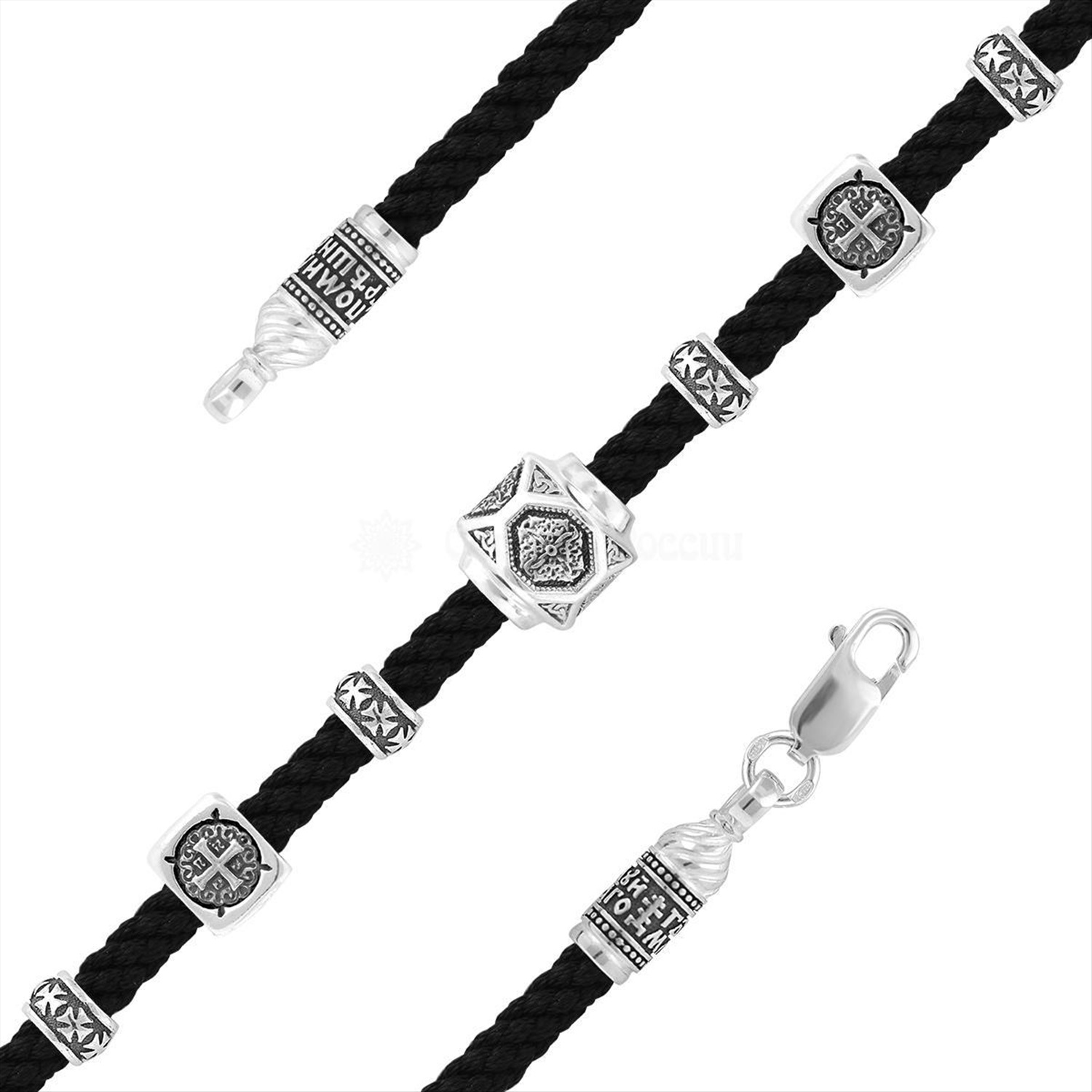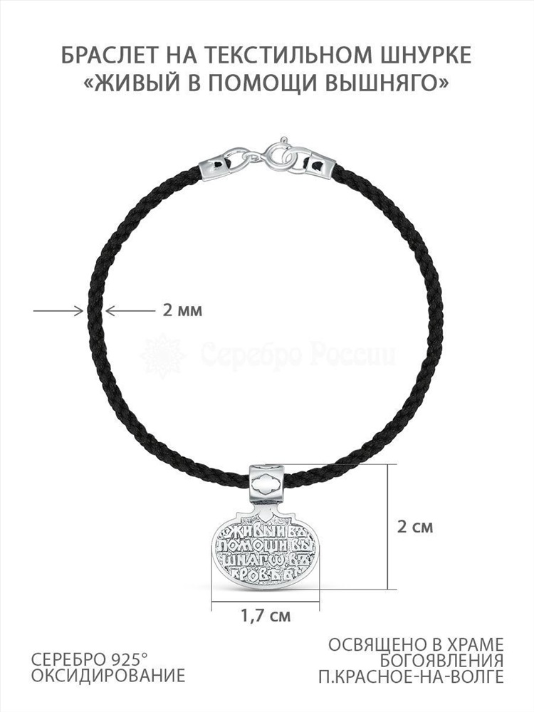 Браслет религиозный из черненого серебра (текстильный шнурок) - "Живый в помощи вышняго" 925 пробы Бр-02 7 фото