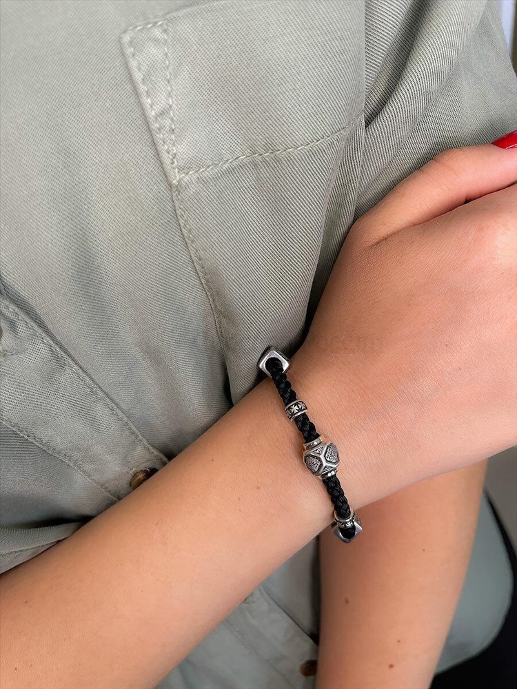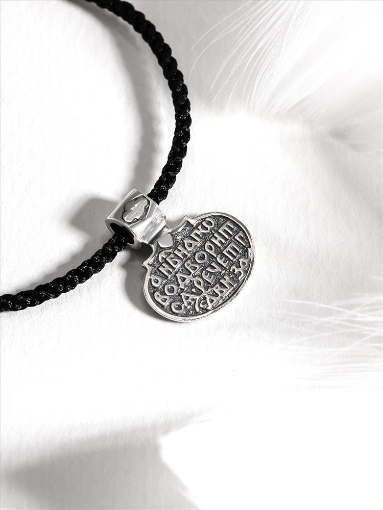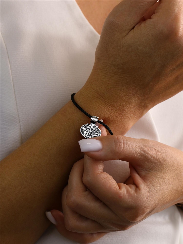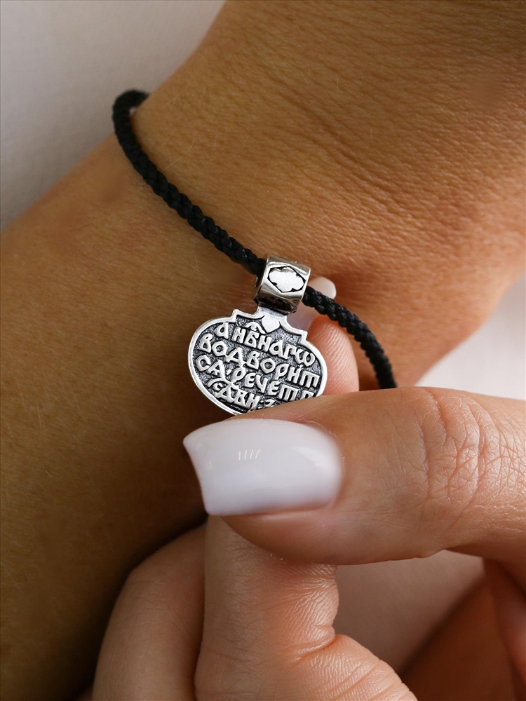 Браслет религиозный из черненого серебра (текстильный шнурок) - "Живый в помощи вышняго" 925 пробы Бр-02 7 фото