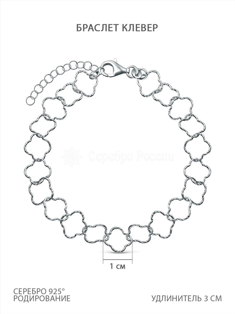 Браслет из серебра родированный - Клевер, 19 см 6201R080L19 2 фото