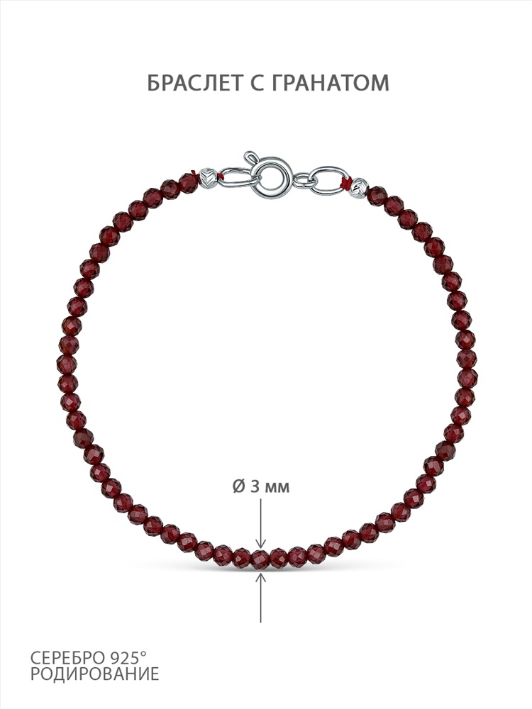 Браслет из серебра с гранатом родированный 41008р404 2 фото