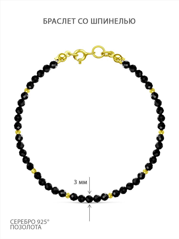 Браслет из золочёного серебра с чёрной шпинелью СБ 604/5ШПЗ 4 фото