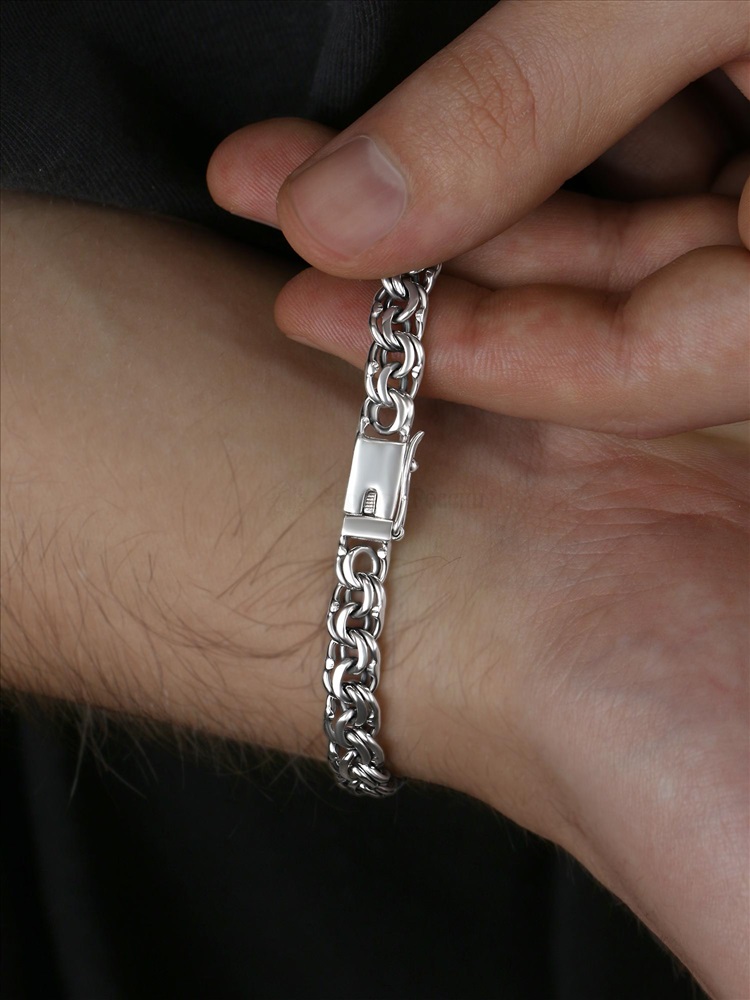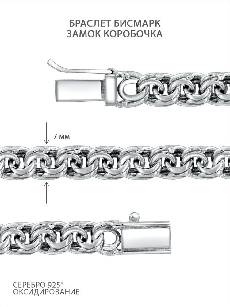 Браслет из серебра родированный с замком " коробочка" - Бисмарк 925 пробы БРБ17021р