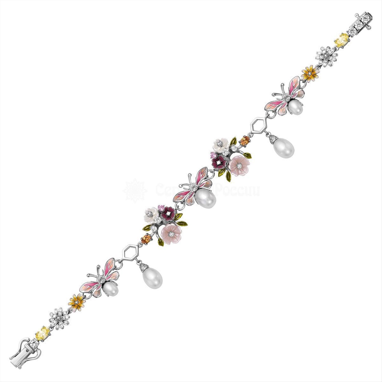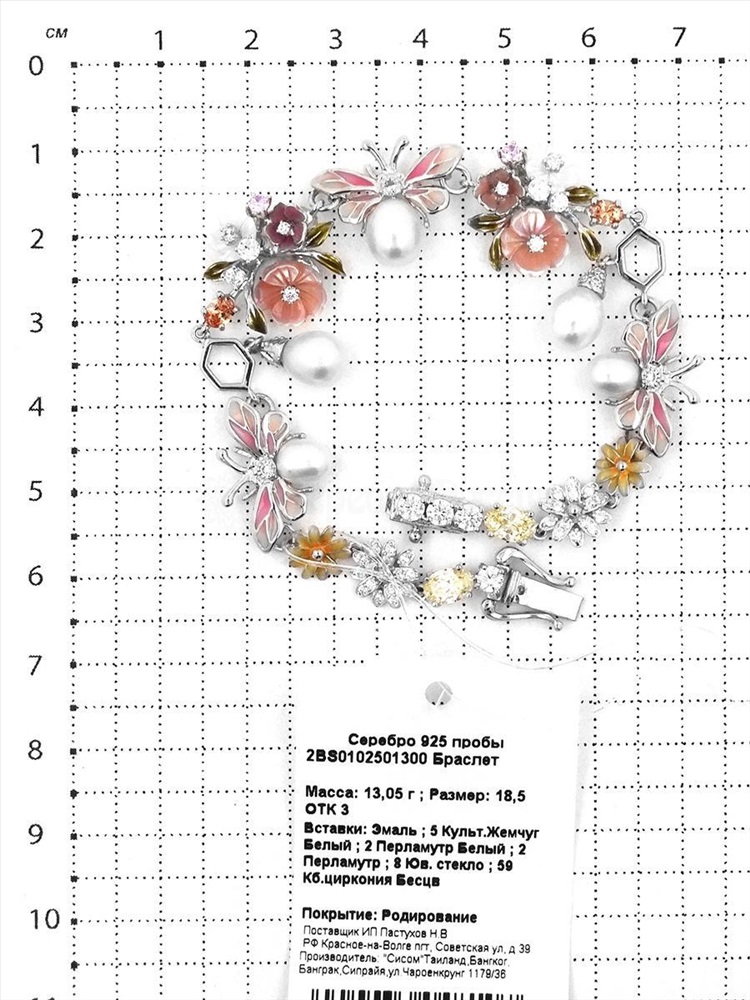 Браслет из серебра с культ.жемчугом, перламутром, юв.стеклом, куб.цирконием и эмалью родированный 925 пробы 2BS0102501300 2 фото