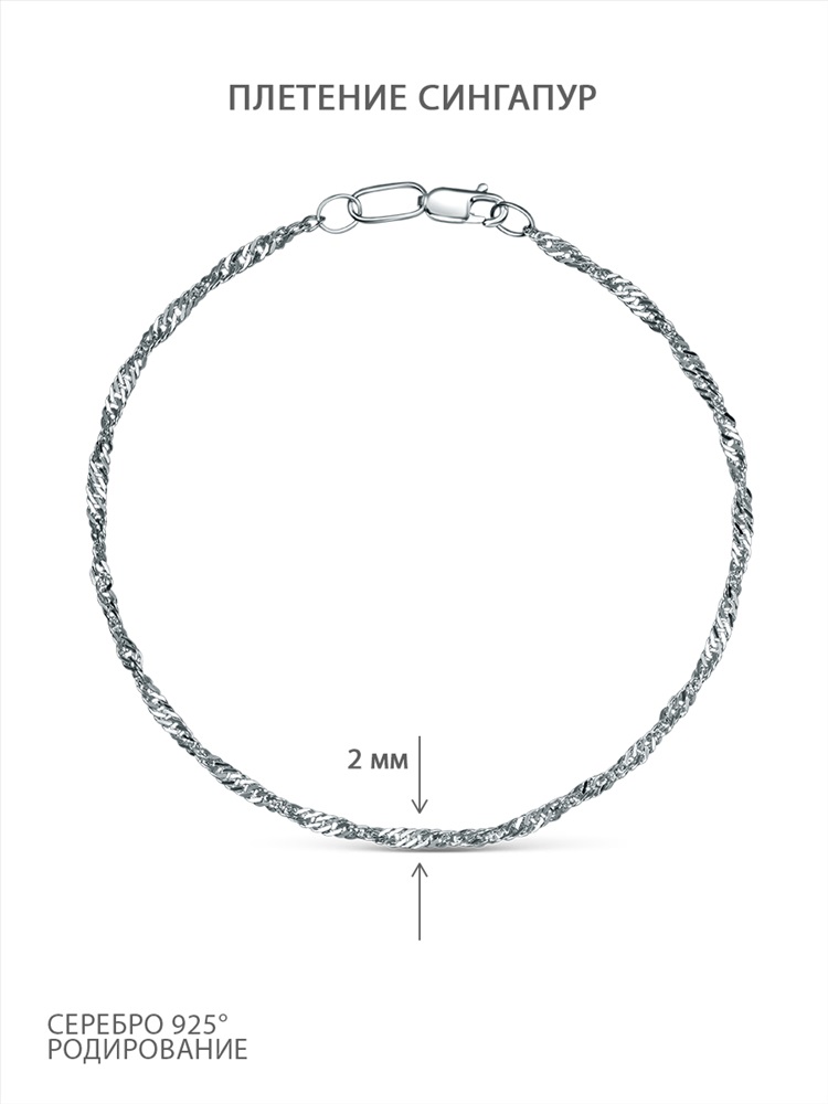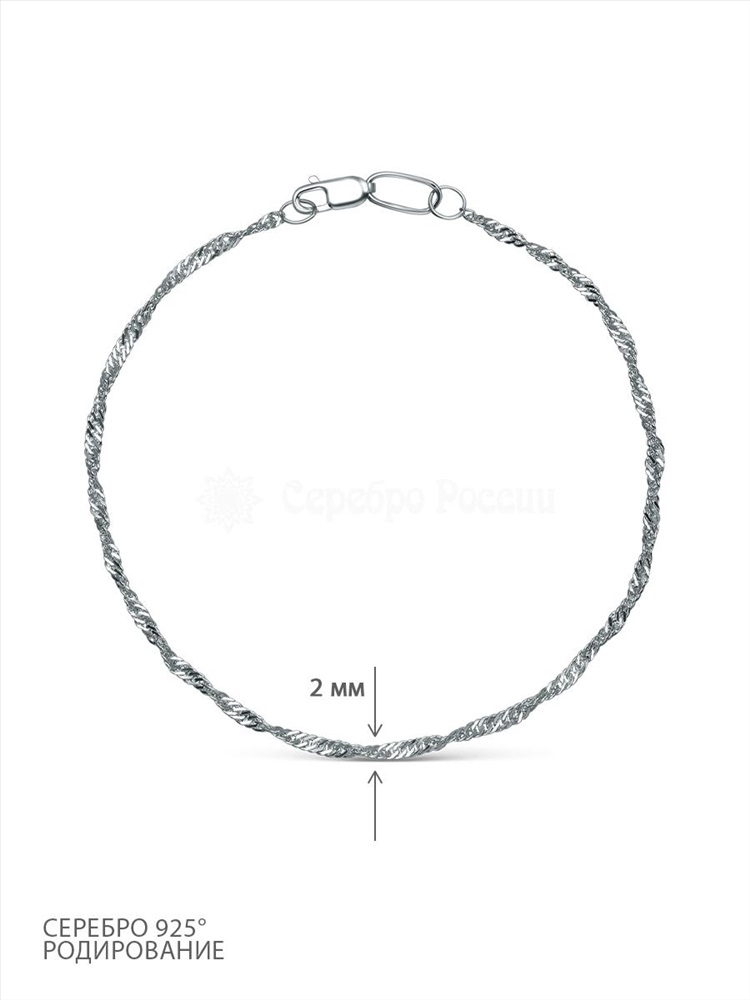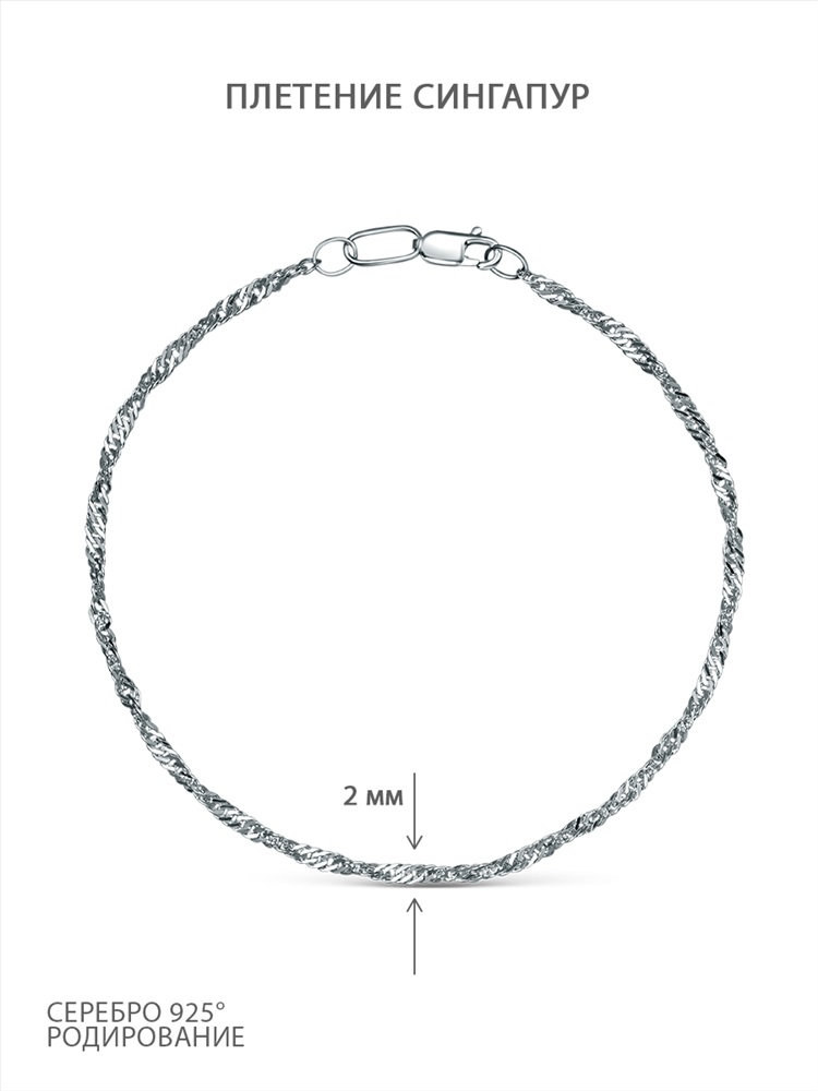 Браслет на ногу из серебра родированный - Сингапур, 24 см 81040022724р сингапур 2 фото