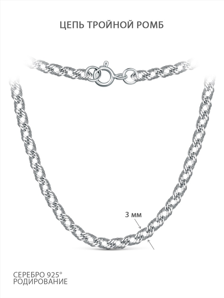 Цепь из серебра родированная - Тройной ромб, 65 см ТРГр-40р65,0 2 фото
