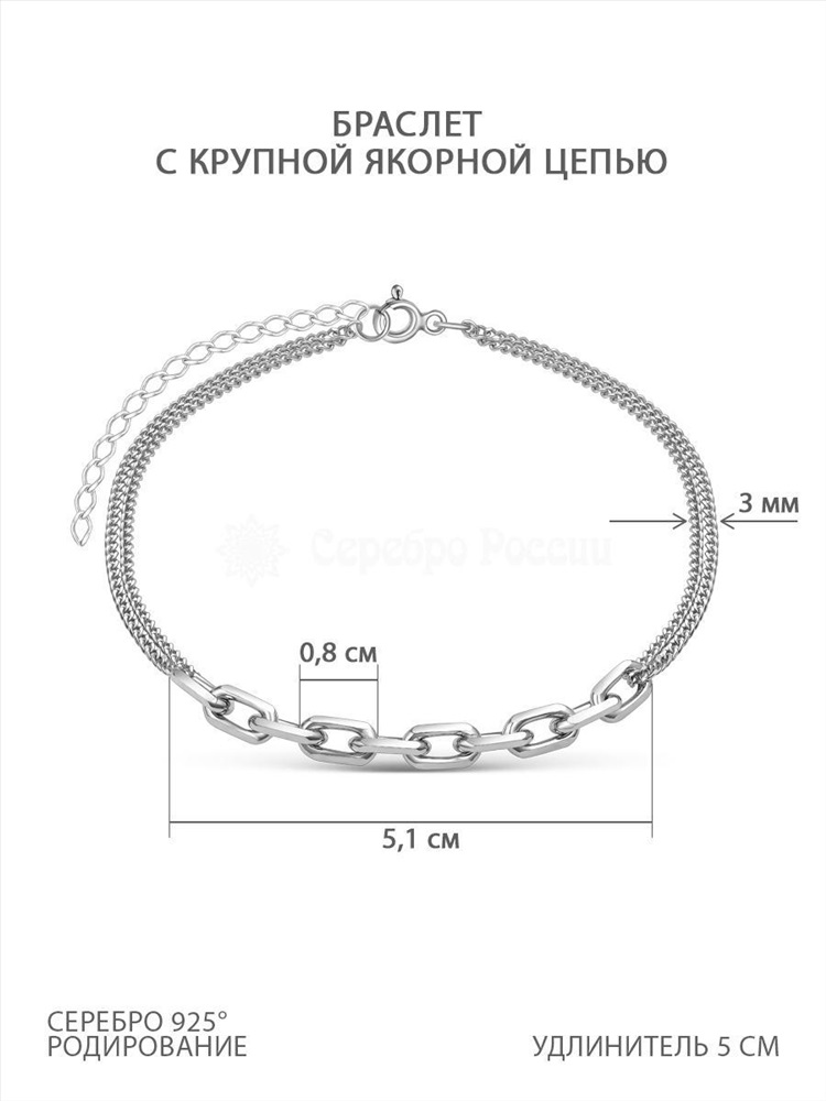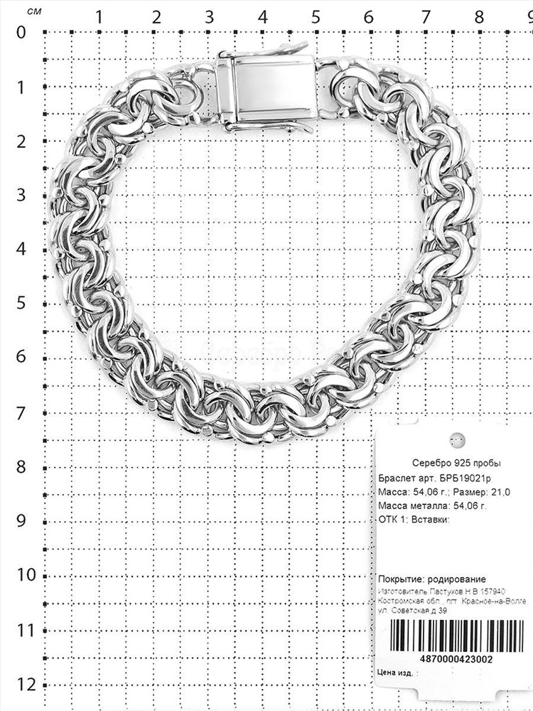 Браслет из родированного серебра - Бисмарк, 22 см 925 пробы БРБ19022р 2 фото