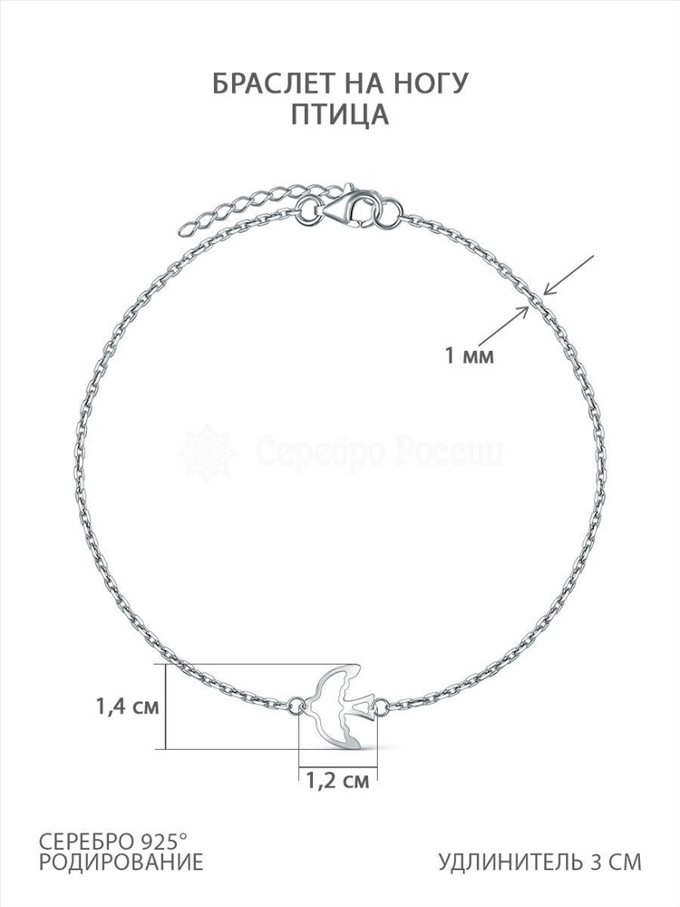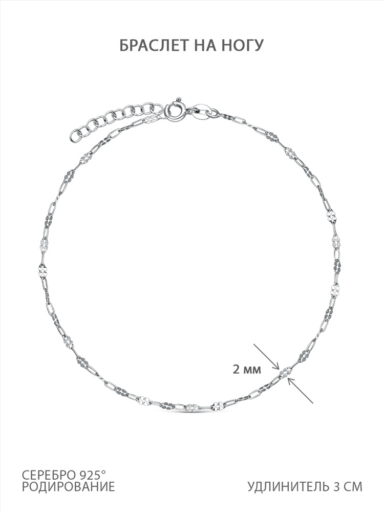 Браслет из серебра родированный (на ногу) 6217R040L23+ 2 фото