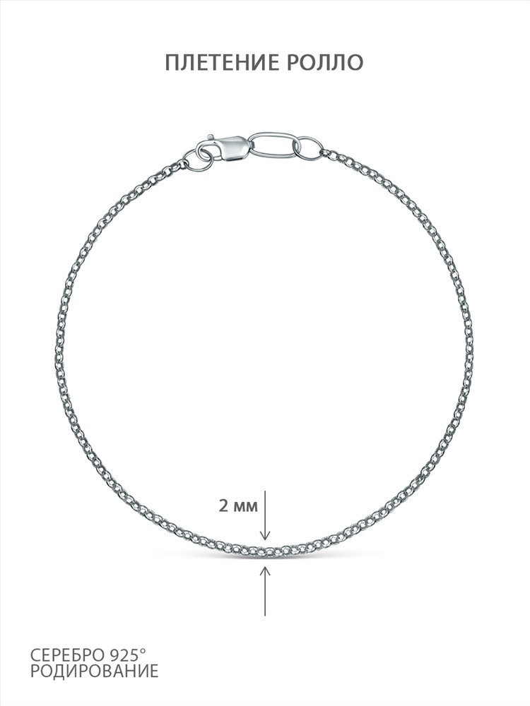 Браслет из серебра родированный - Ролло, 18 см 81060340018ролло 2 фото