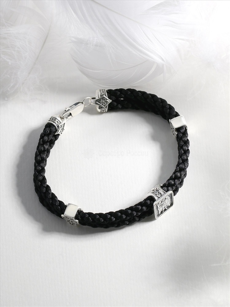 Браслет православный из серебра родированный - Пресвятая Богородица, Ангел Хранитель, Николай Чудотворец 64010100 2 фото