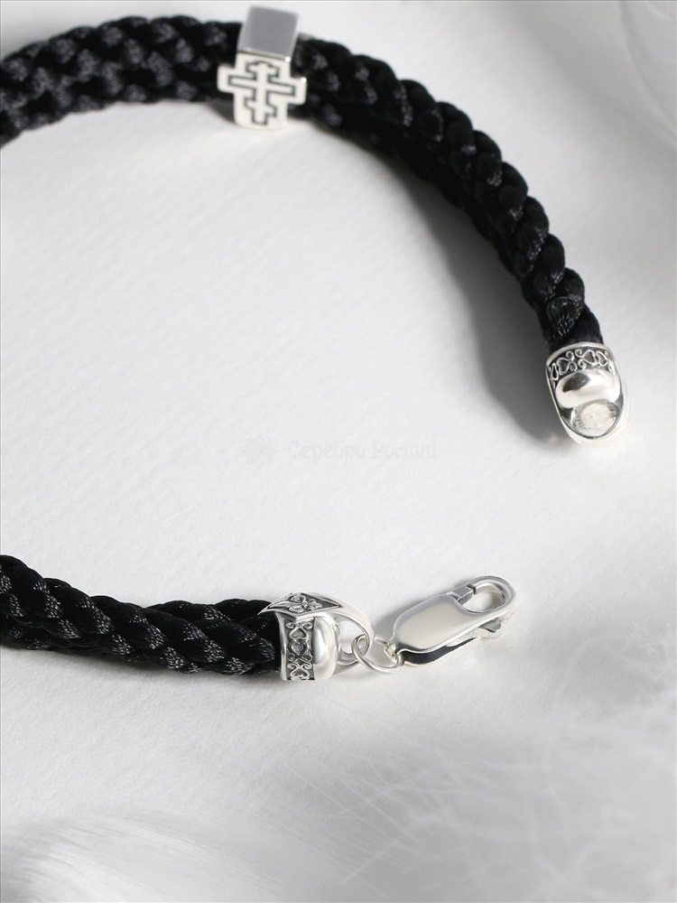 Браслет религиозный из родированного серебра с фианитами (текстильный шнурок) Бр03-кт200 4 фото