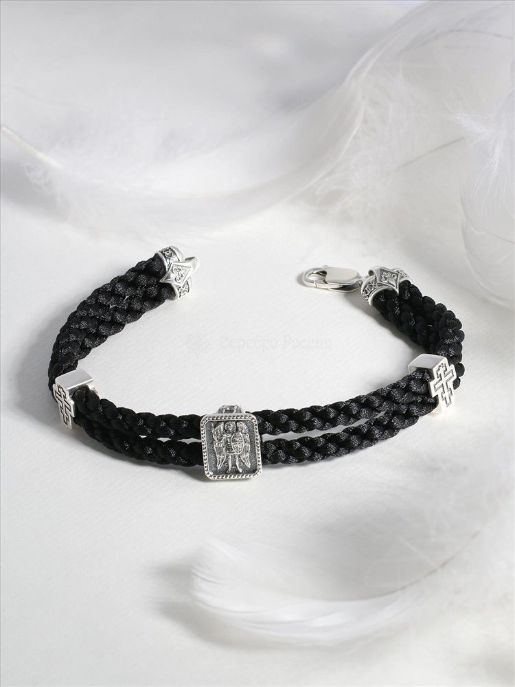 Браслет текстильный из чернёного серебра - Архангел Михаил, кресты Бр-2015ч 8 фото