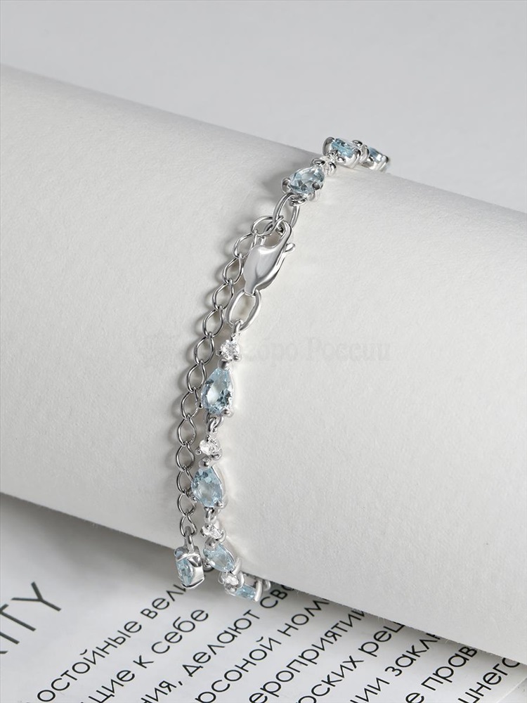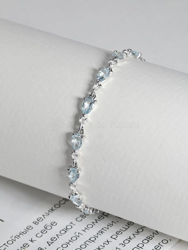 Браслет из серебра с натуральным SKY топазом и фианитами родированный 925 пробы 6-005р402 6 фото