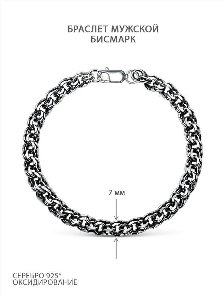 Браслет из серебра с чернением - Бисмарк, 22 см 925 пробы БРБ13022ч 2 фото