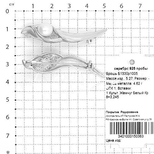 Брошь из серебра с культ.жемчугом родированная Б1330р1005