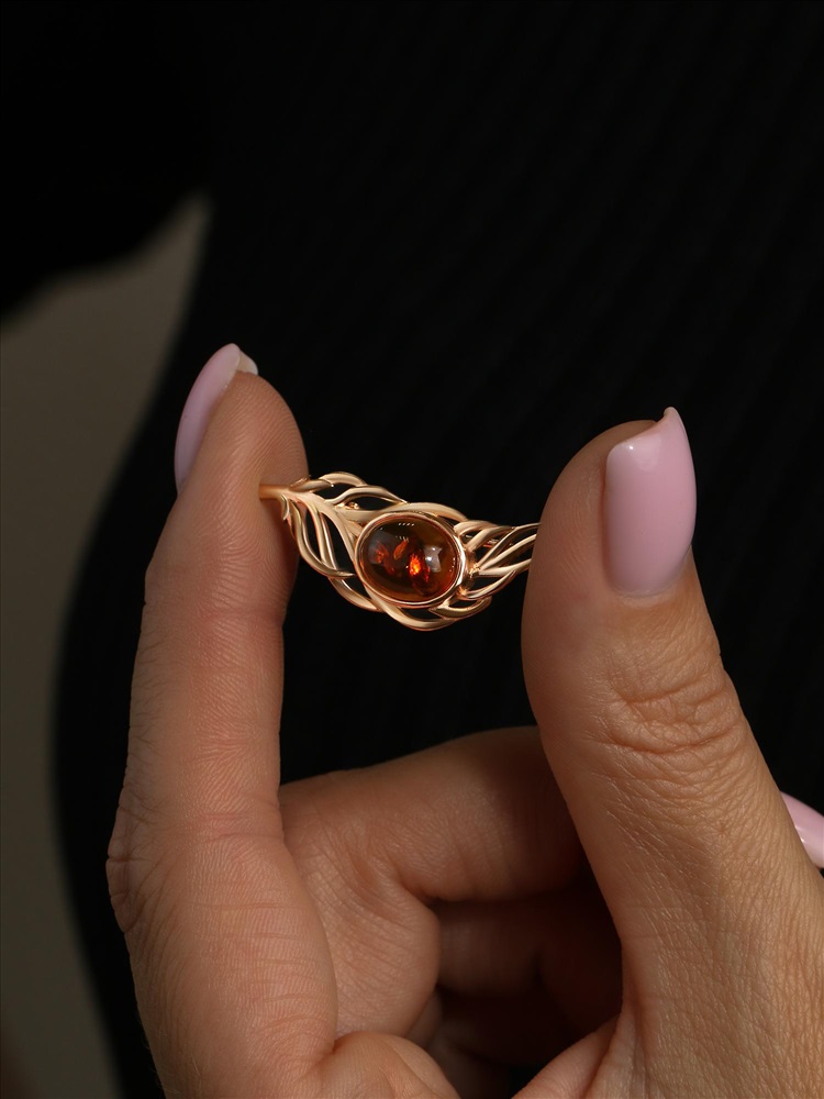Брошь из золочёного серебра с натуральным янтарём - Перо бр-010з440