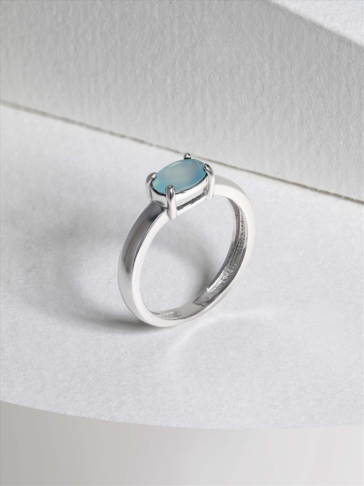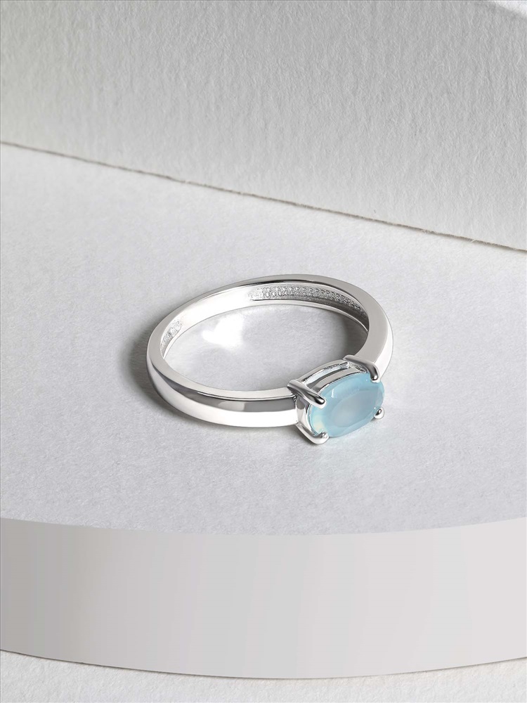 Кольцо из серебра с кварцем параиба родированное 925 пробы кл-003 кварц парайба