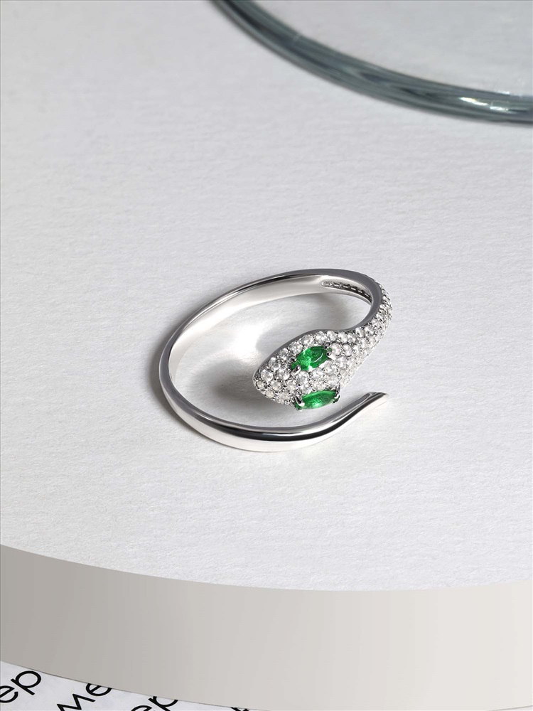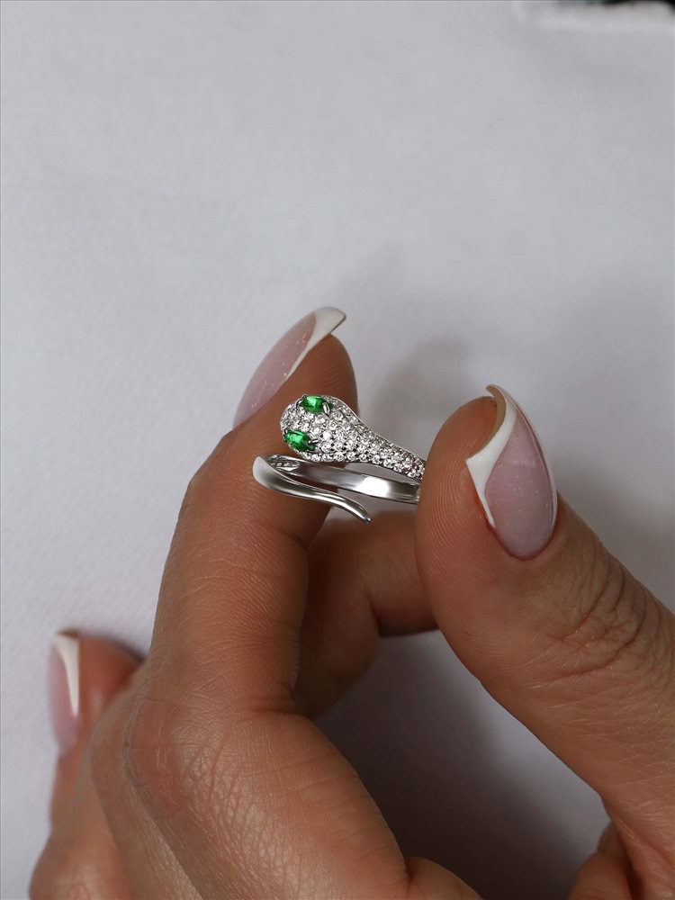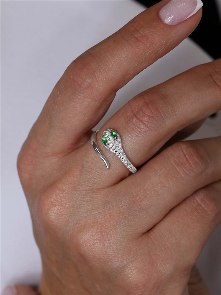 Кольцо из серебра c фианитами родированное - Змея 1-653р23200 8 фото