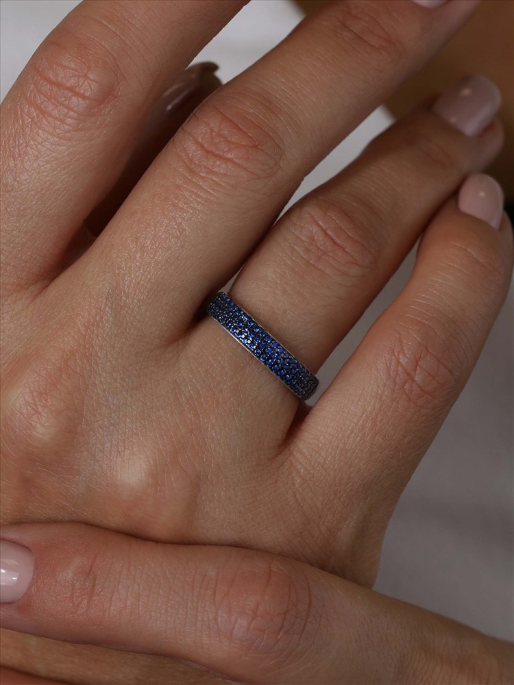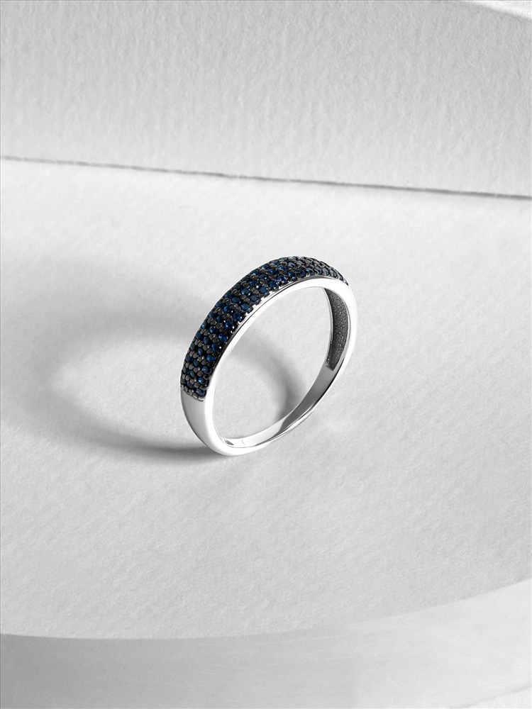 Кольцо из серебра с синей ноношпинелью родированное 925 пробы к-7190р208 6 фото