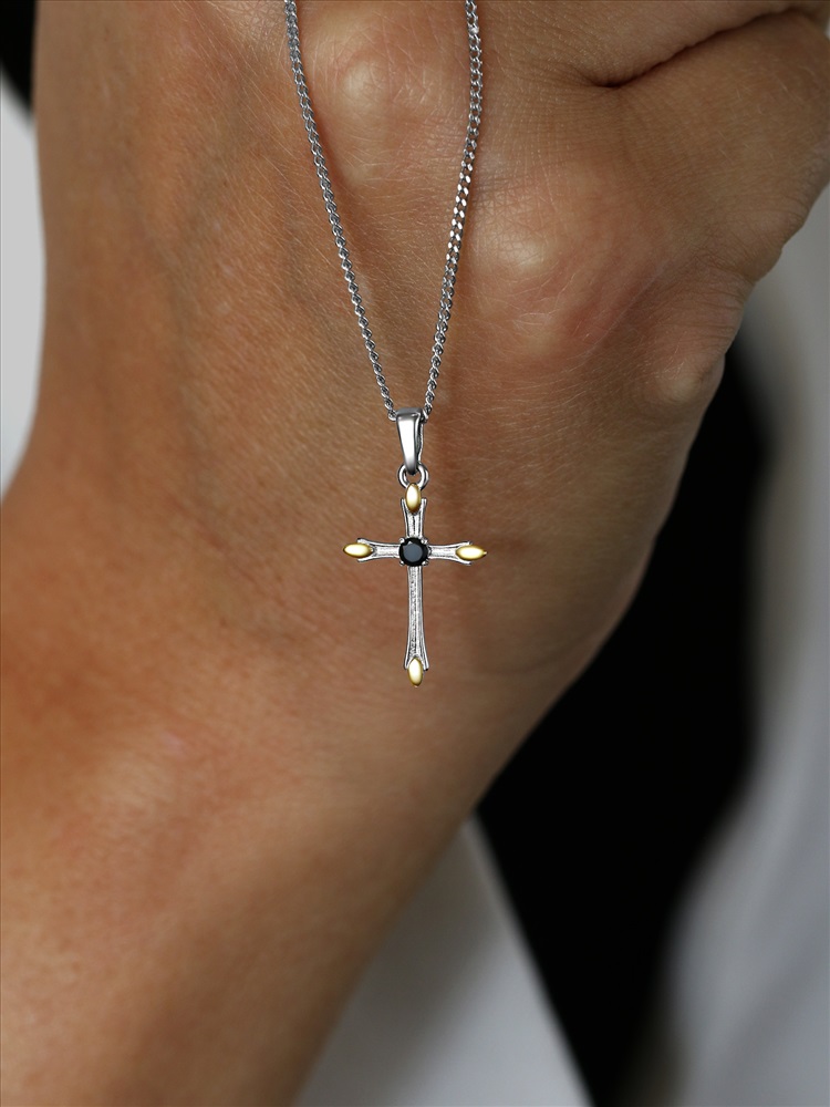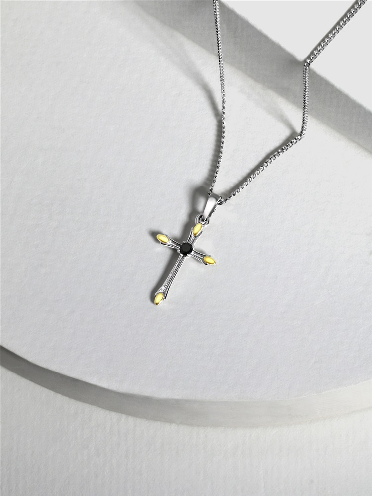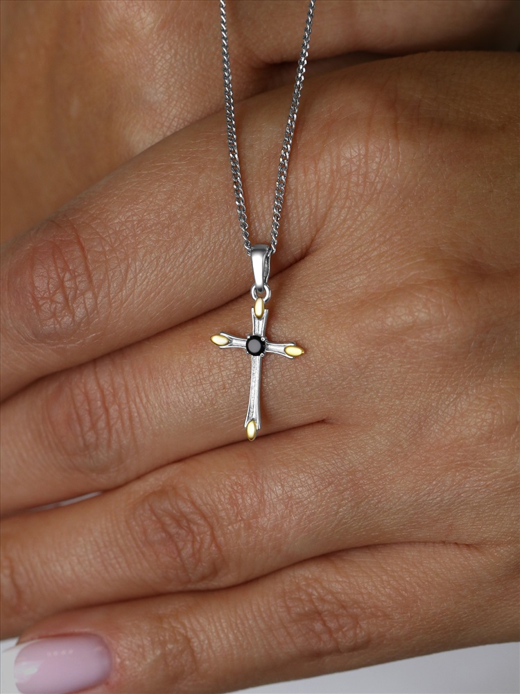 Крест из чернёного серебра с золочением 925 пробы 3-143чз