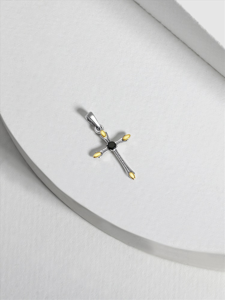 Подвеска-крест из родированного серебра с нат.шпинелью и золочением - 2,4 см 925 пробы 7-04рз416 6 фото