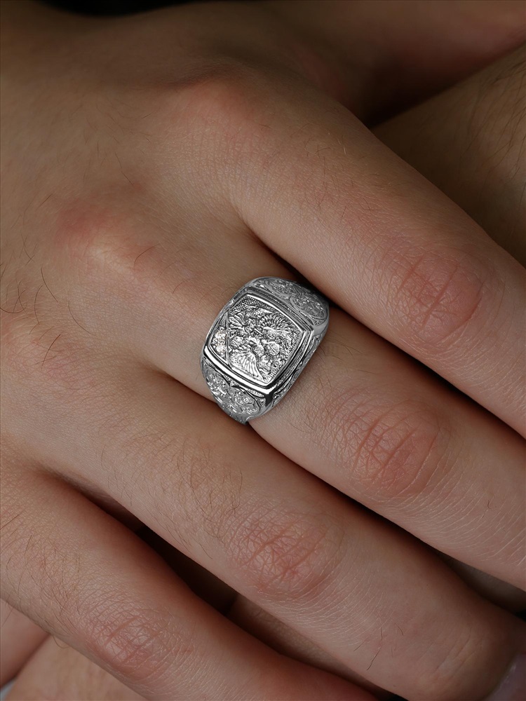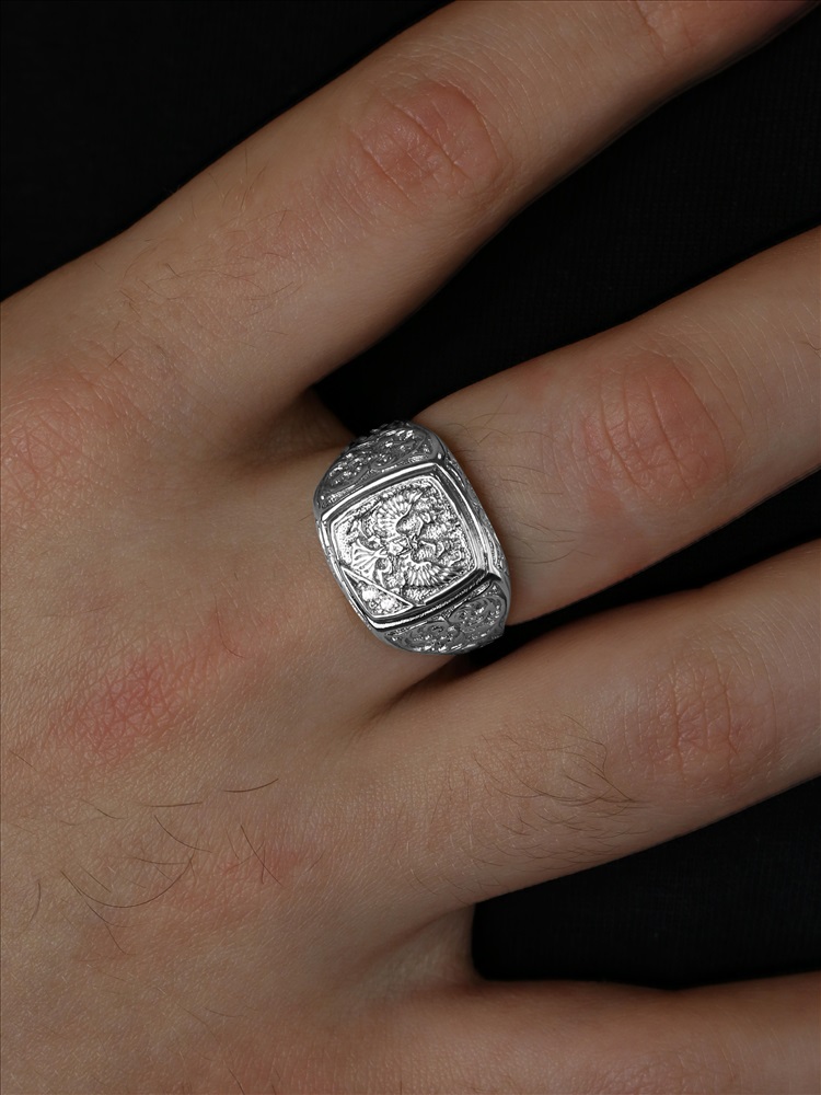 Печатка мужская из чернёного серебра с фианитами - Герб 925 пробы 1-123 6 фото