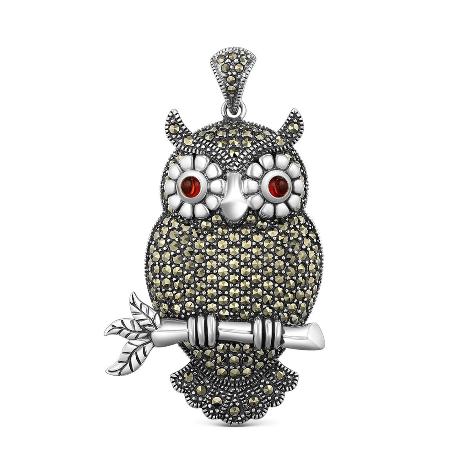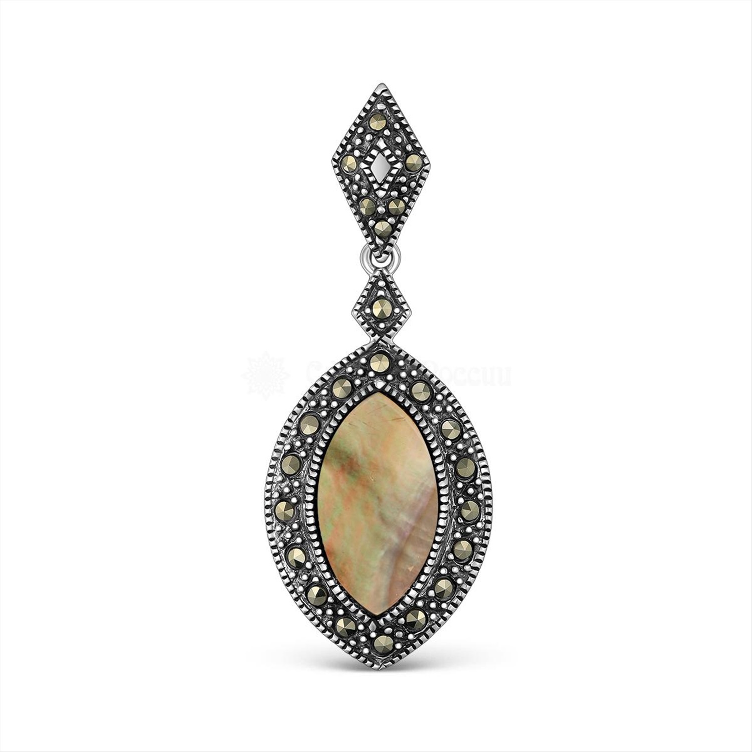 Подвеска женская из чернёного серебра с натуральным зелёным перламутром и марказитами 925 пробы MN00683BK-MOP