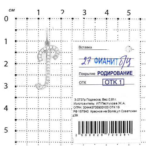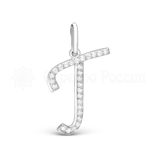 Подвеска-буква из серебра с фианитами родированная 925 пробы 3-0737р 2 фото