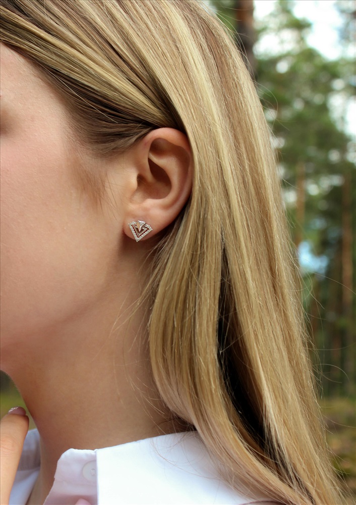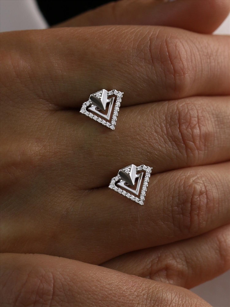 Серьги-пусеты из серебра с фианитами родированные 925 пробы с1319р200 2 фото