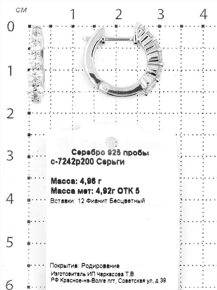 Серьги из серебра с фианитами родированные 925 пробы с-7214р200 4 фото